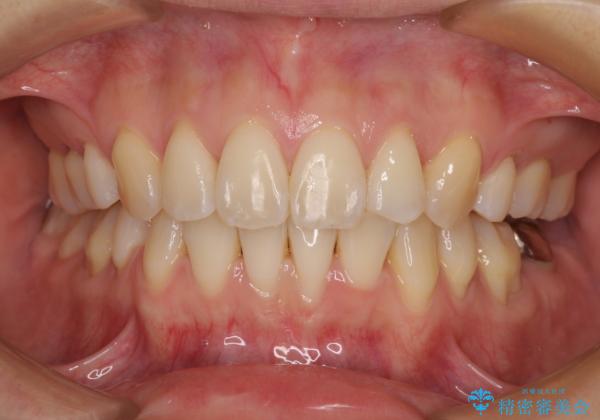 非抜歯矯正ではデコボコを解消することでより口元が突出してしまうため、上下左右の小臼歯4本の抜歯を行い、ワイヤー装置による矯正治療を行うこととしました。