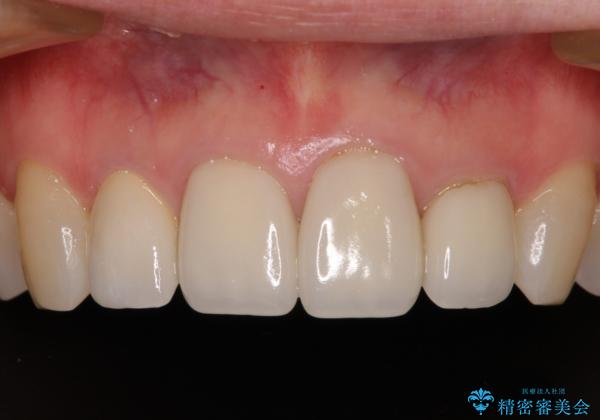- 上顎4前歯に装着されているセラミッククラウンのうち、ひとつが欠けてしまったとのことで来院された患者様です。