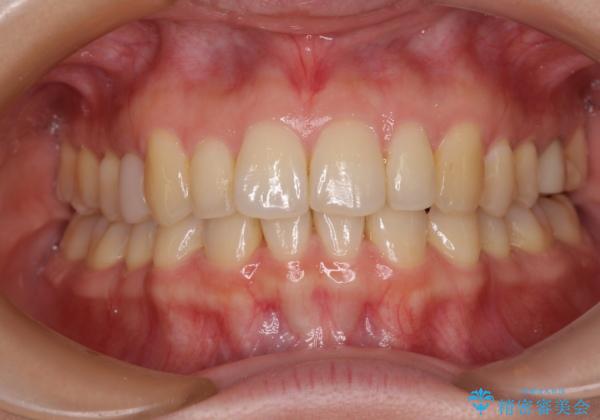 下顎前歯2本が先天欠損しており、上顎歯列に対して、下顎歯列がアンバランスに小さい状況でした。