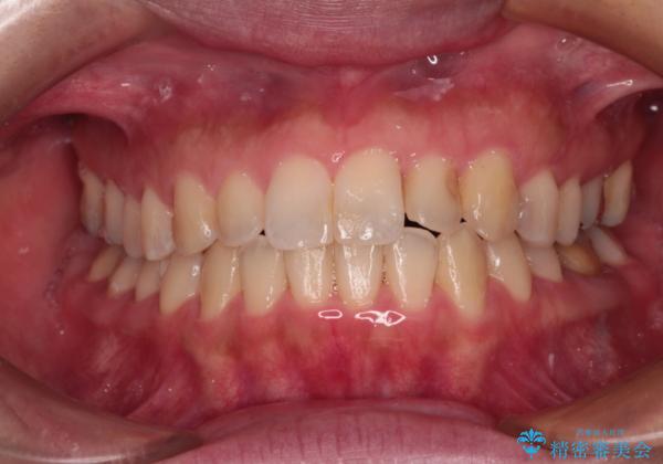 捻れていた前歯の形態が、先端が欠けていたり、一部むし歯処置により左右非対称の形態となっていたため、なかなかゴールが定まらず、治療期間がかかってしまいました。