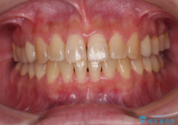 開咬により奥歯のみが接触している状態で、前歯部にほとんど接触のない状態で、奥歯に非常に負担のかかる咬み合わせでした。