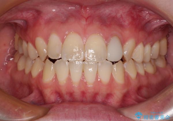 途中1年8ヶ月ほど来院されず、久しぶりの来院後は治療が面倒とのことで、前歯の叢生や隙間に不十分な点が残った状態での終了となりました。