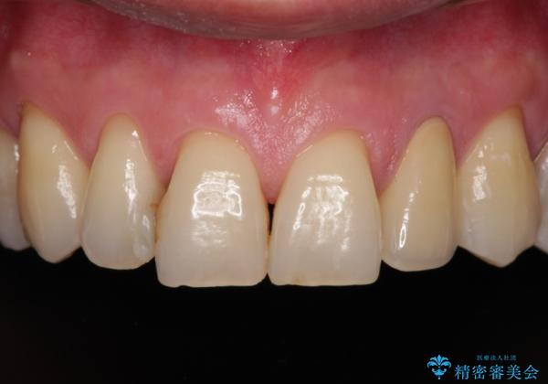 - 前歯の根管治療の際に、一時的に見た目を回復したままの状態で放置してしまったとのことで来院された患者様です。