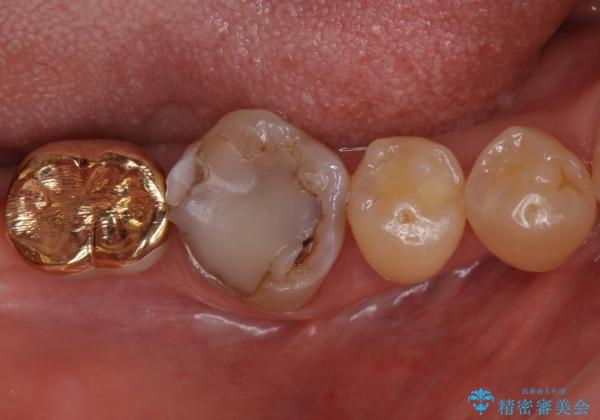 セラミックインレーやアンレーでは強度に不安が残るため、クラウンでの修復処置としました。