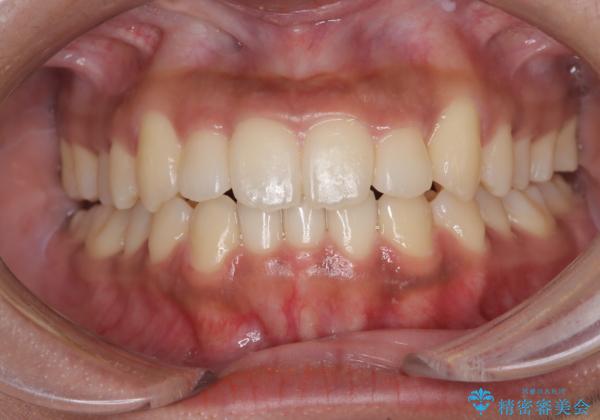 下の前歯が一本足りない患者様でしたので、シミュレーションを作り、事前に患者様と治療ゴールのイメージをしっかり共有したうえでインビザラインを用いて治療を行っています。