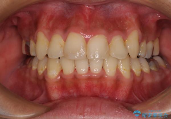 骨格的に下顎骨が上顎骨に対して後退位であったため、上顎の左右第一小臼歯を抜歯し、デコボコを改善するとともに開咬を改善していくこととしました。