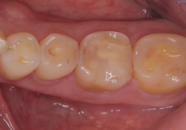 元々咬合面にレジンインレーが入っており、近心歯質が薄くなっていたことや、食いしばるクセを持っていることも、ヒビが入った要因の一つと考えられます。