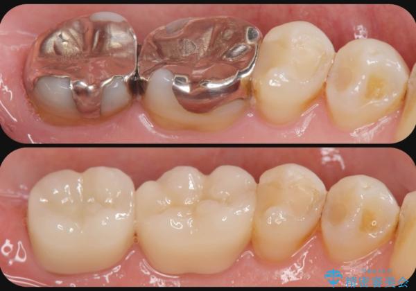 - 「長年使っている奥歯の目立つ銀歯を白くしたい。」、と希望され来院されました。