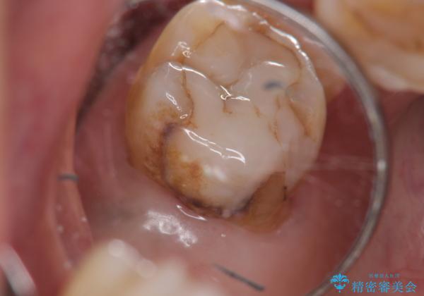 仮歯はすっかり劣化、変質しており、上記の写真のように隣の歯が虫歯になっている状態でした。