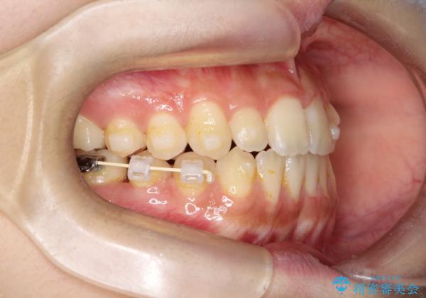 インビザラインにて萌出スペースを確保し、途中ワイヤー装置にて配列を行いました。