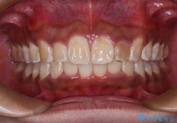 口元の突出感はあまりありませんでしたが、上顎歯列が全体的に前方にあり、更には下顎歯列が深く咬みこんでいるために、上顎前歯が前方に突出している状態でした。