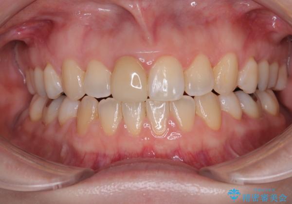 上顎歯列は歯の移動量が少なかったため、セラミッククラウンは装置を装着せずに治療を終えることができました。