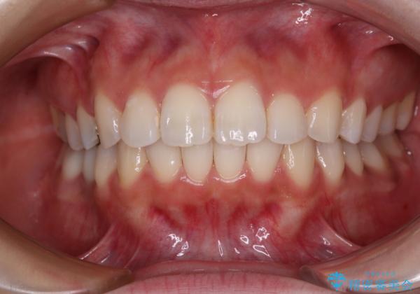 上顎歯列全体を後方移動させたことで唇に当たる感覚は改善され、更には上下の正中位置も合わせることができました。