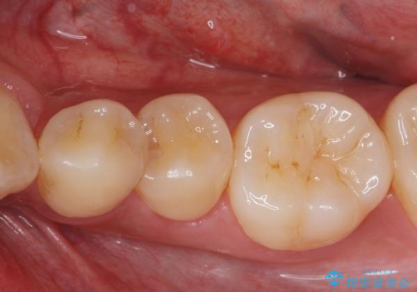 - 矯正前の患者様です。検査により虫歯がありましたのでe-maxインレー治療を行いました。