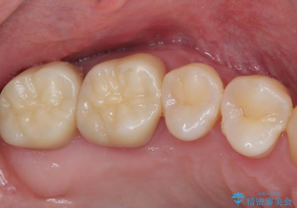 下顎大臼歯は根管治療がされている歯が咬合時に痛みを感じ、上顎の大臼歯2歯は冷たいものがしみる状態でした。