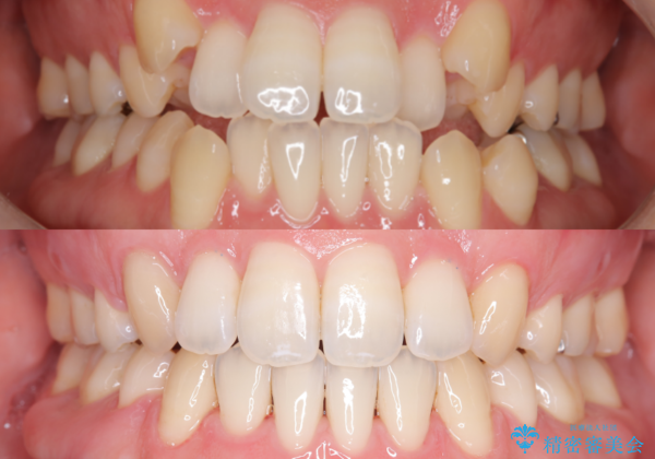 治療後は、前歯の位置や噛み合わせが整い、見た目も機能面も大きく改善されました。きれいな歯並びを得ることができ、患者様にも非常に満足していただけました。