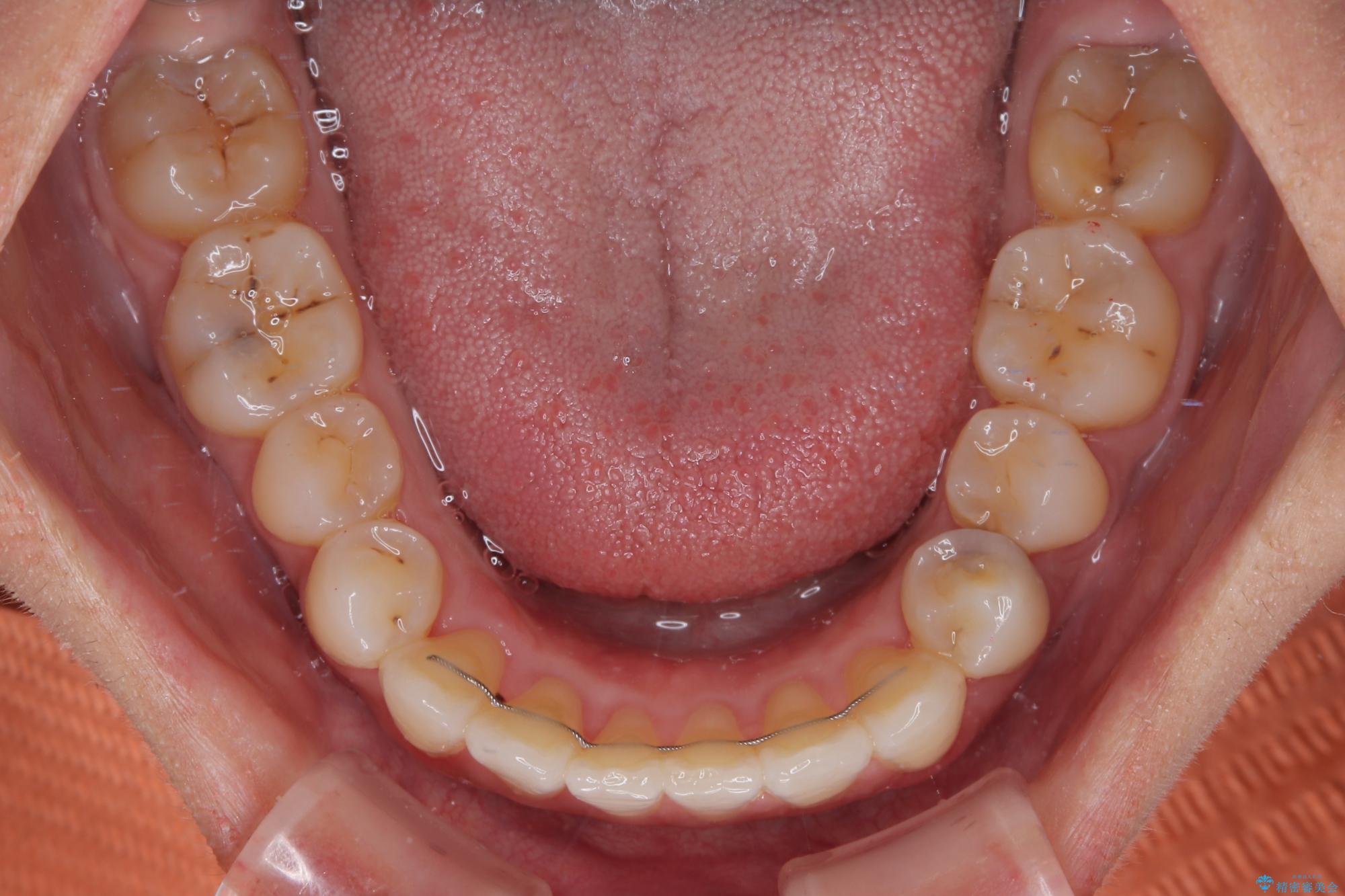 下顎前歯は後戻りを起こしやすいため、舌側を細いワイヤーで固定し、マウスピース型リテーナーで保定を行うこととしました。