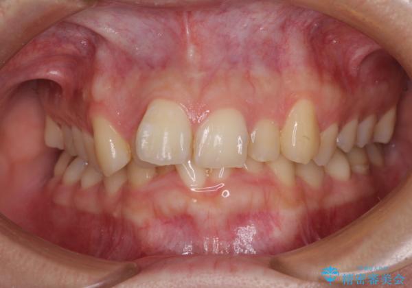 上下の前歯にデコボコがあり、更にはディープバイトにより下顎前歯の大半が隠れている状態でした。