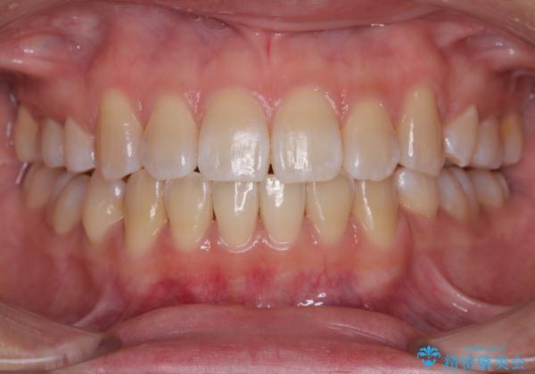 非接触の前歯と下顎のデコボコ ワイヤー装置による矯正治療