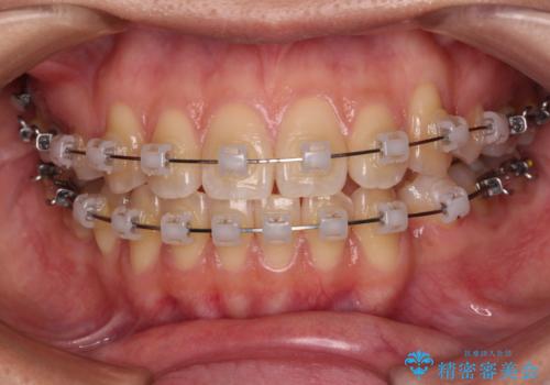 非接触の前歯と下顎のデコボコ ワイヤー装置による矯正治療