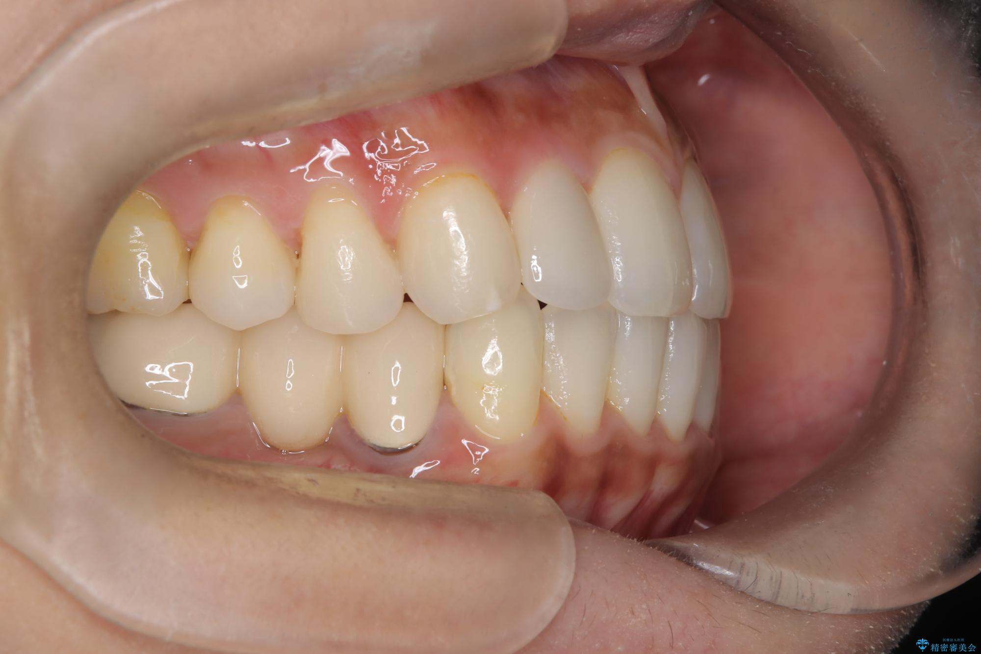 矮小歯により歯の大きさが揃わず、審美的に満足できない状態でした。まずインビザライン矯正にて歯並びを理想的な位置に調整し、スペースや噛み合わせを整えました。その後、矮小歯にセラミッククラウンを被せ、歯の形態・色調を隣接する天然歯に合わせて仕上げました。矯正治療とセラミック修復を併用することで、調和の取れた美しい歯列と自然な口元を手に入れ、大変満足いただけました。