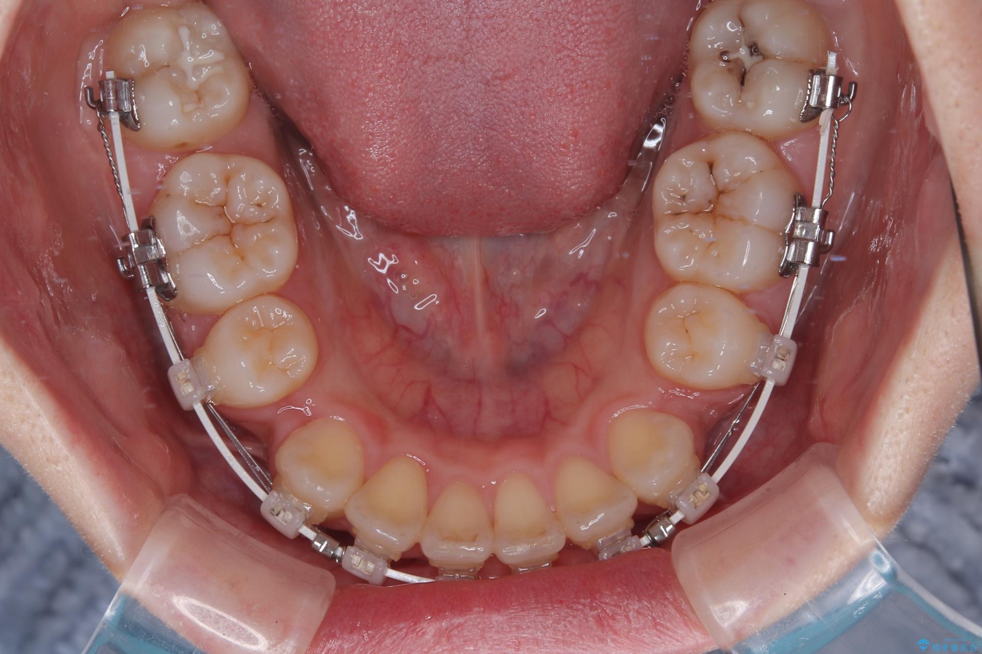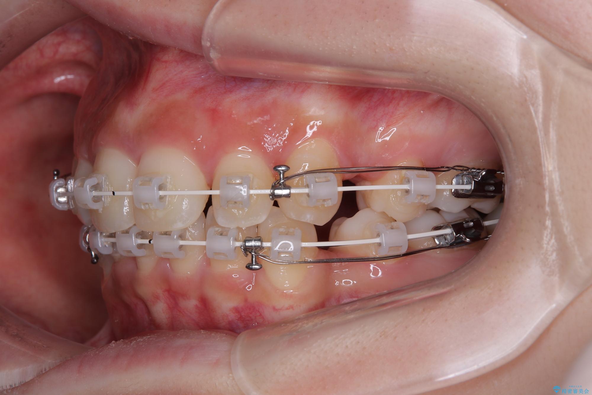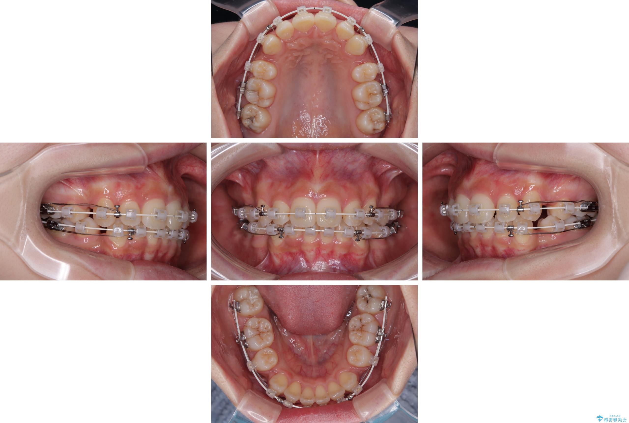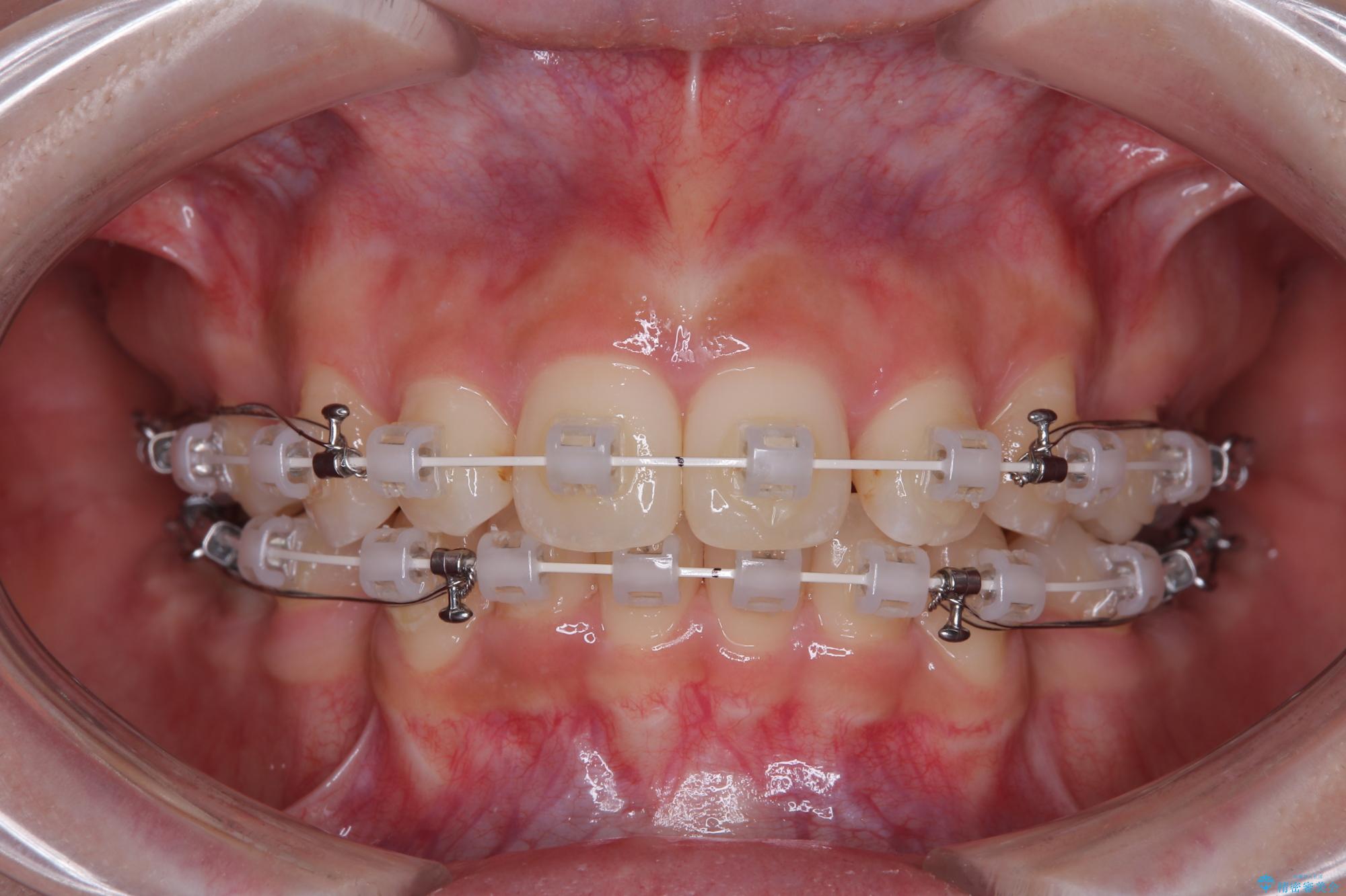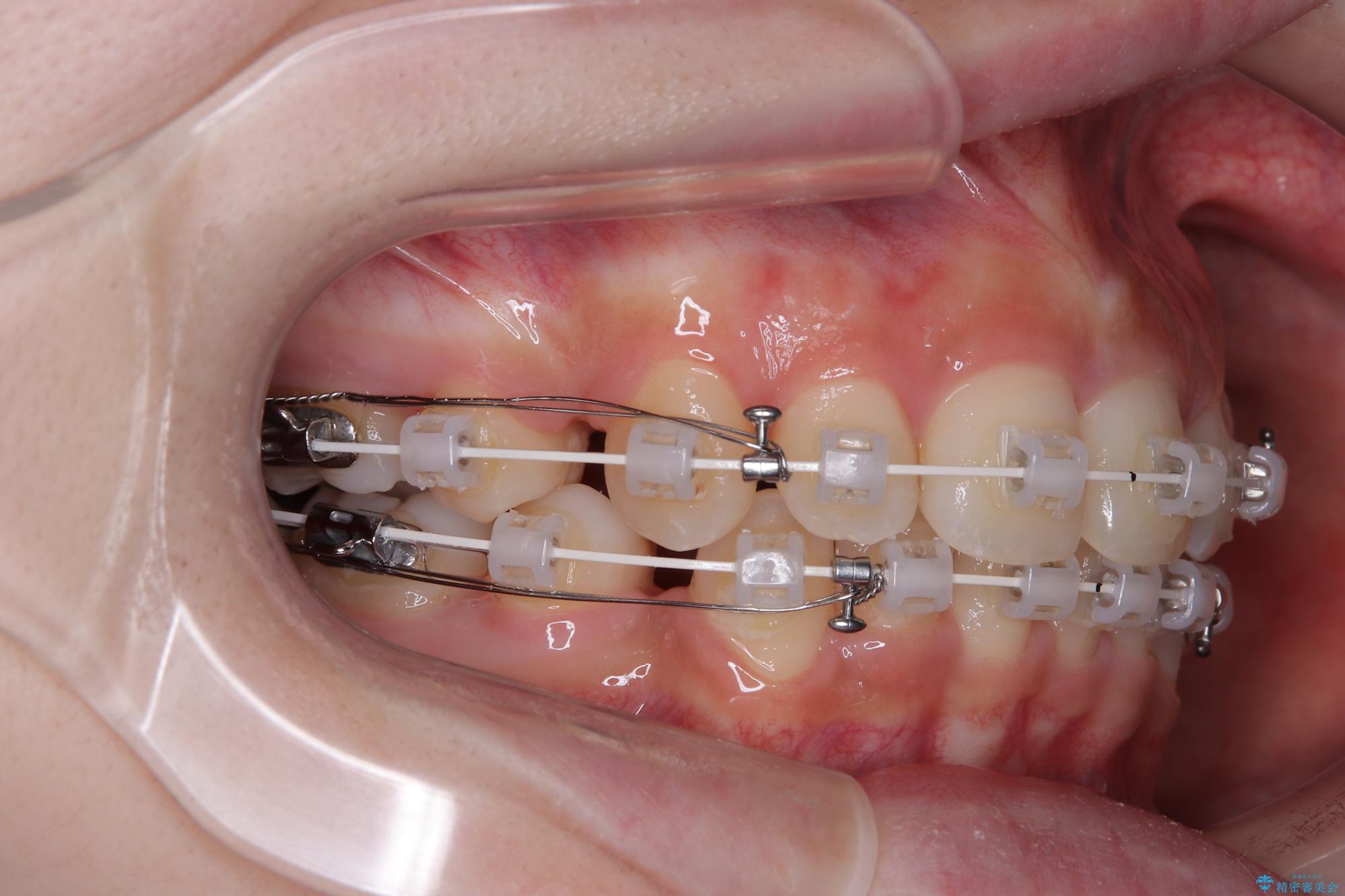 上下左右第一小臼歯4本を抜歯して、積極的に口元を引っ込めるよう、ワイヤー装置にて矯正治療を行うこととしました。