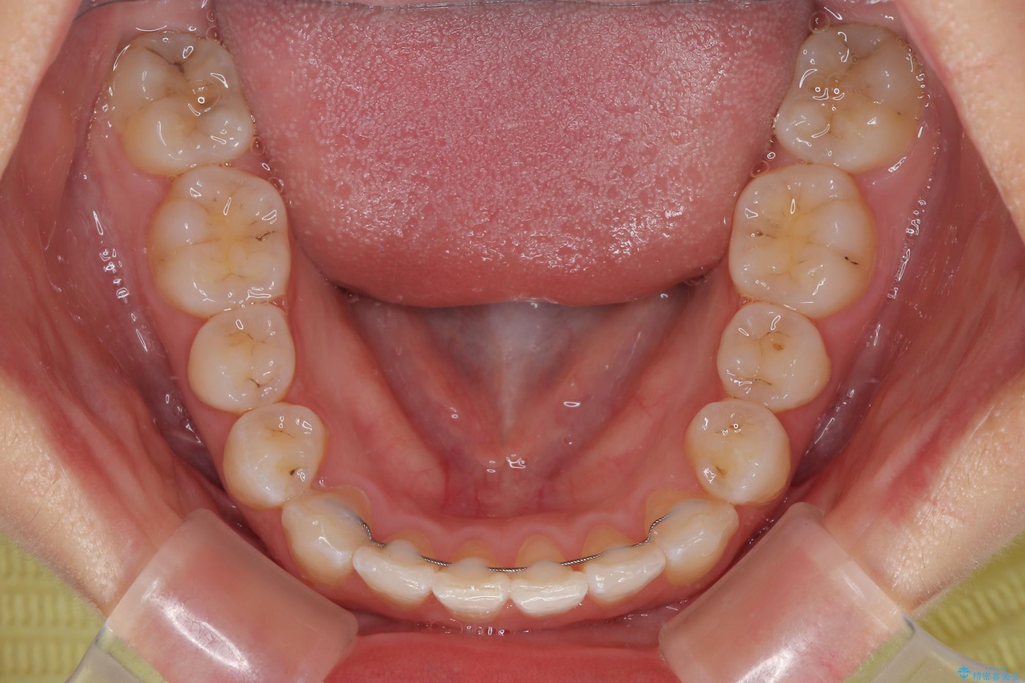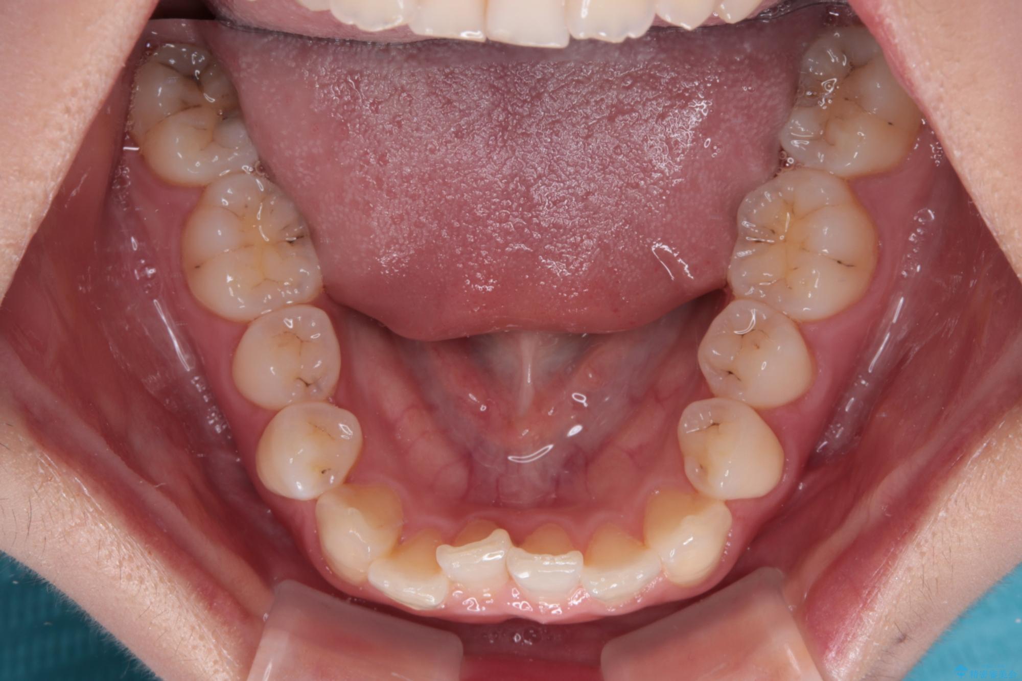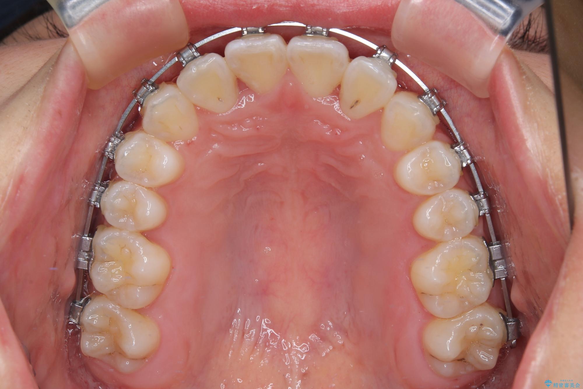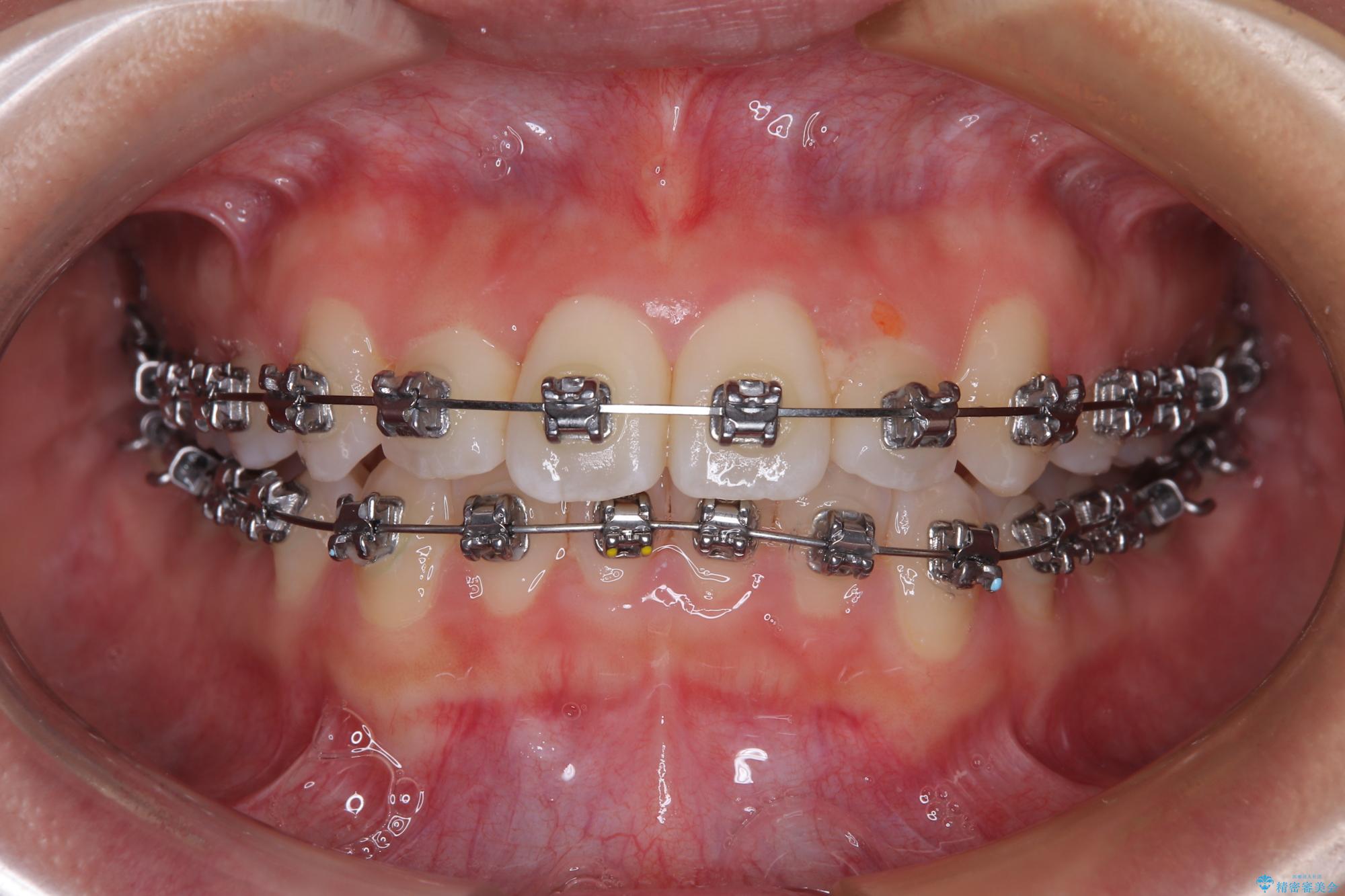 ワイヤー矯正でもマウスピース矯正でも対応可能でしたが、マウスピースによる自己管理に一切の自信がないとのことで、ワイヤー装置にて矯正治療を行うこととしました。