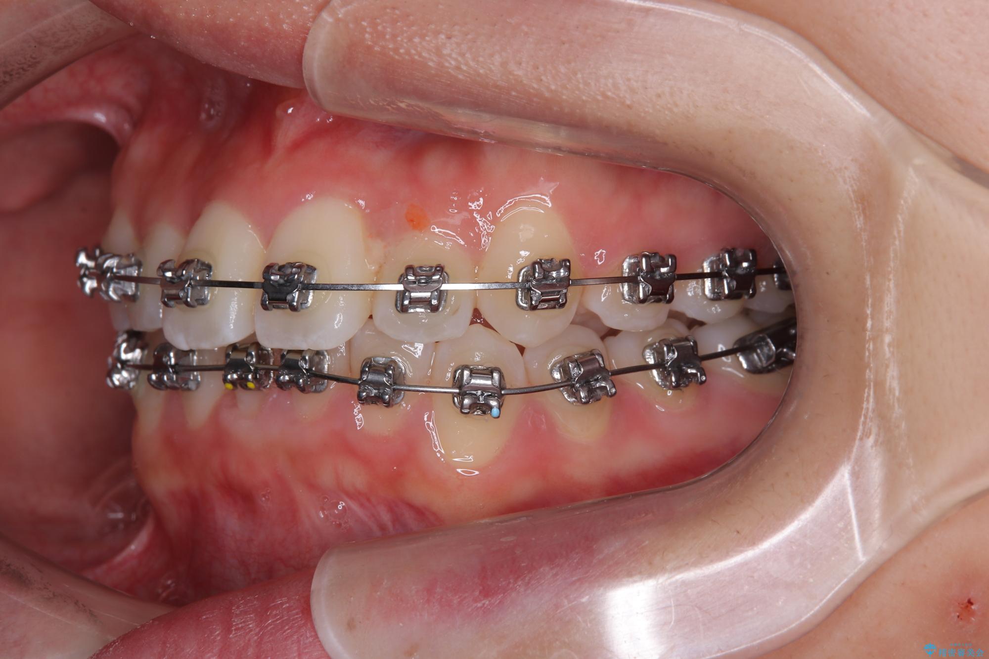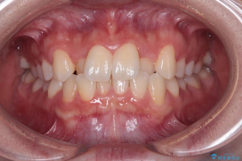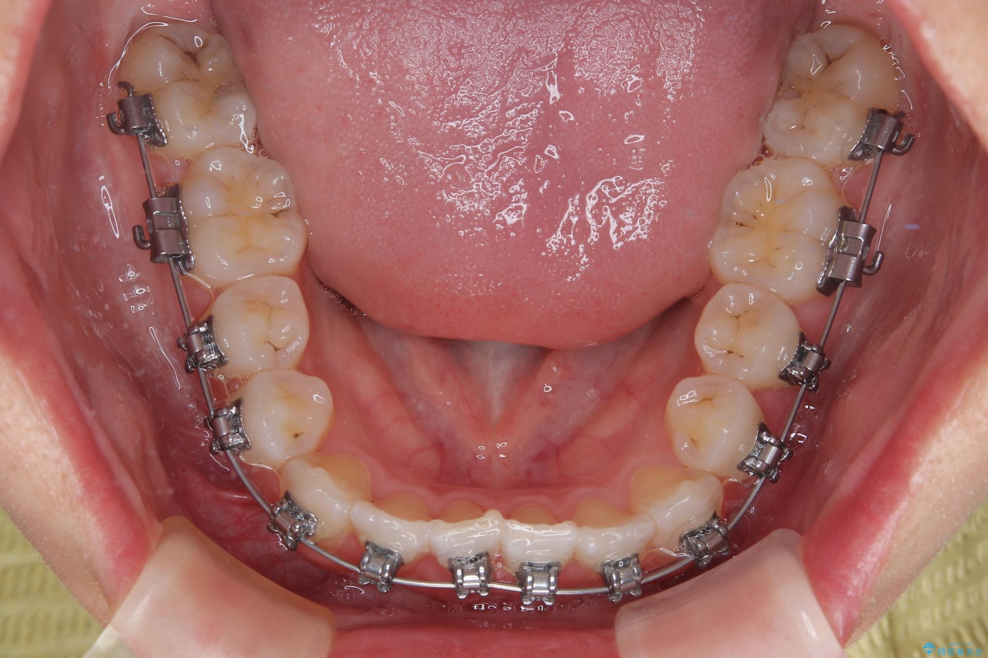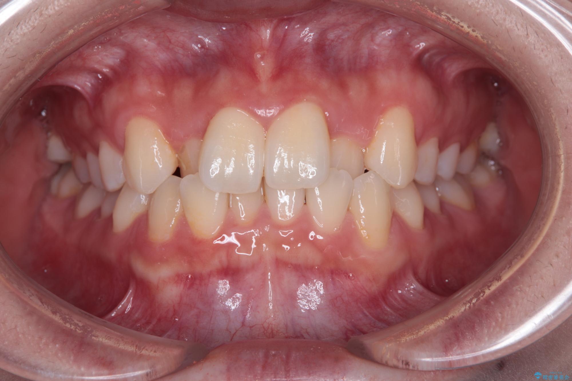ワイヤー矯正でもマウスピース矯正でも対応可能でしたが、マウスピースによる自己管理に一切の自信がないとのことで、ワイヤー装置にて矯正治療を行うこととしました。