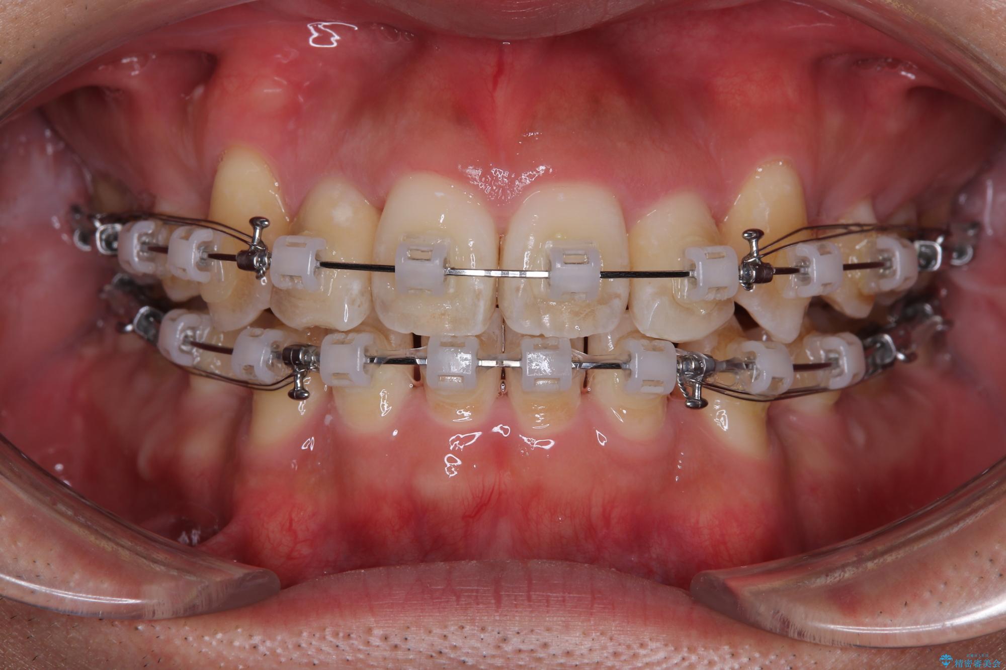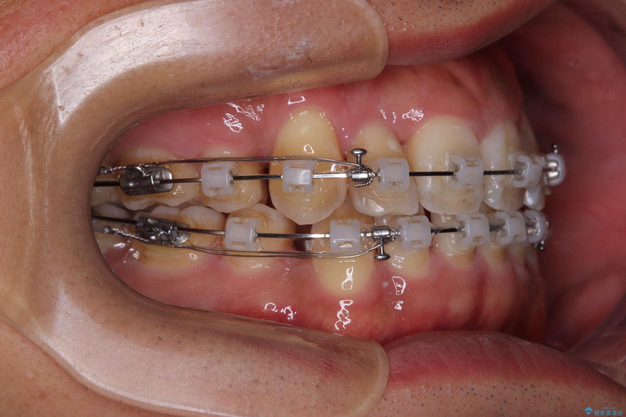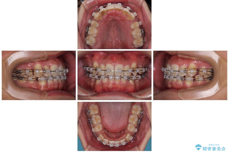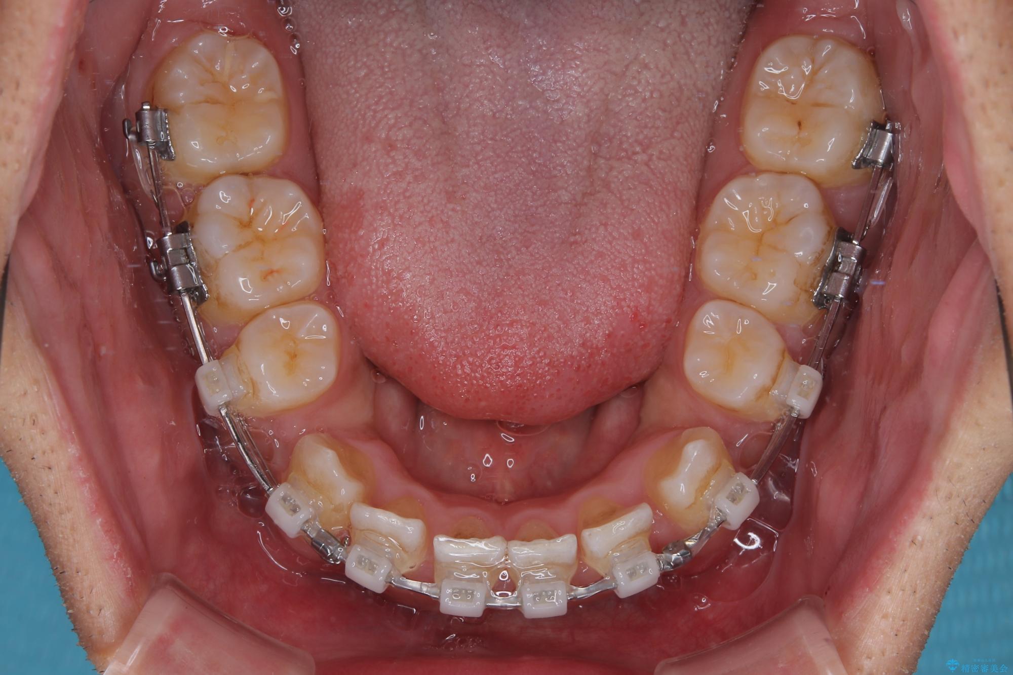 矯正装置は、審美性と費用面のバランスを考慮して、プラスチックブラケットとメタルワイヤーを使用しました。