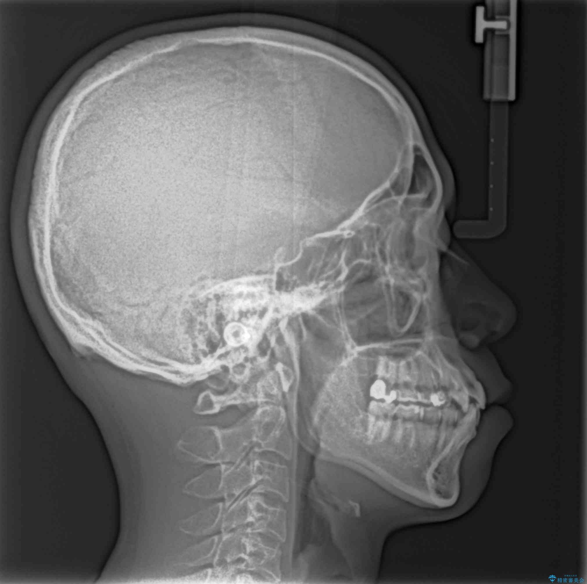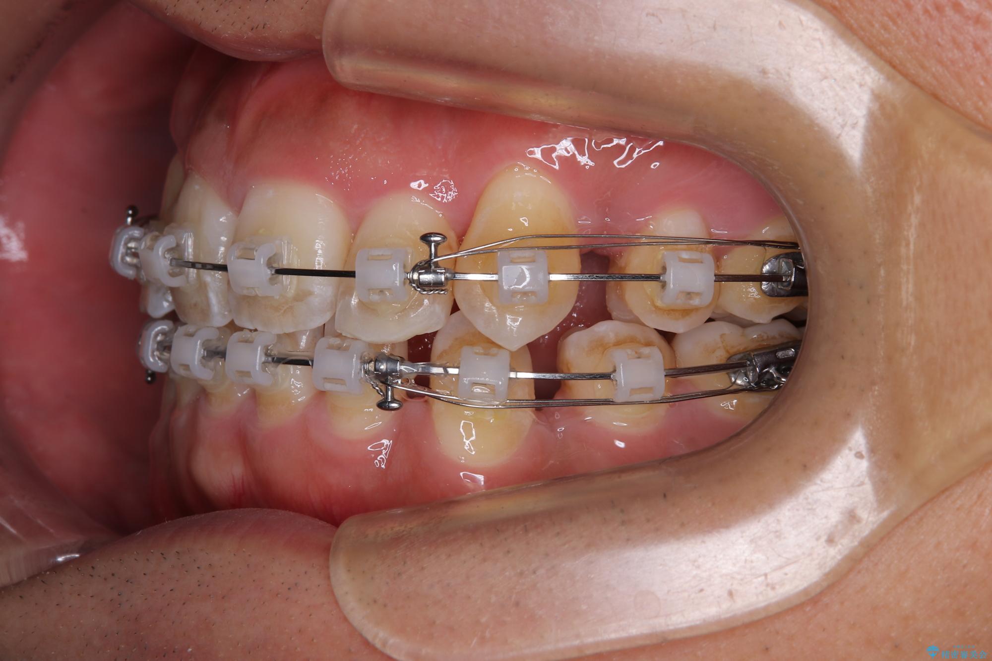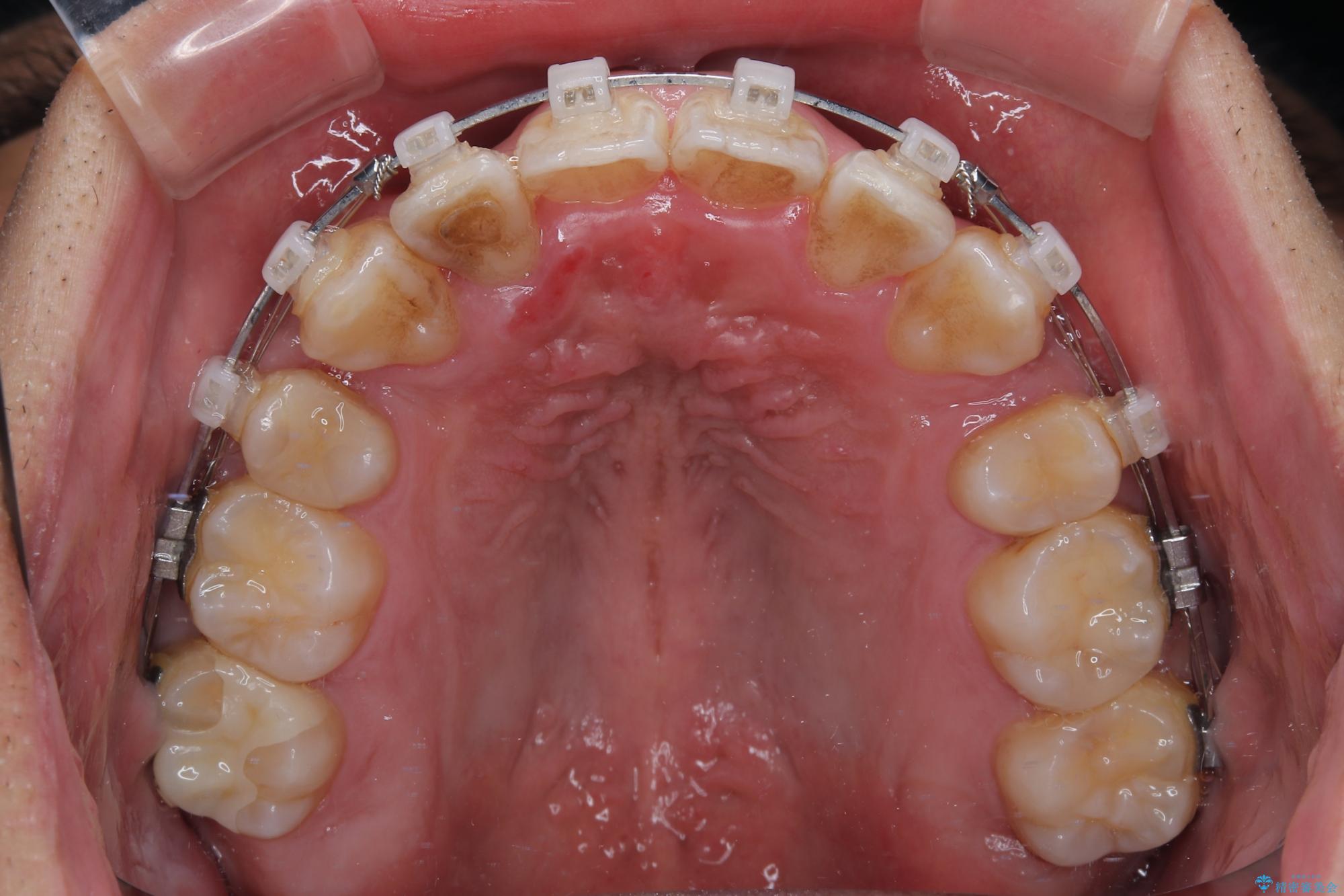 矯正装置は、審美性と費用面のバランスを考慮して、プラスチックブラケットとメタルワイヤーを使用しました。