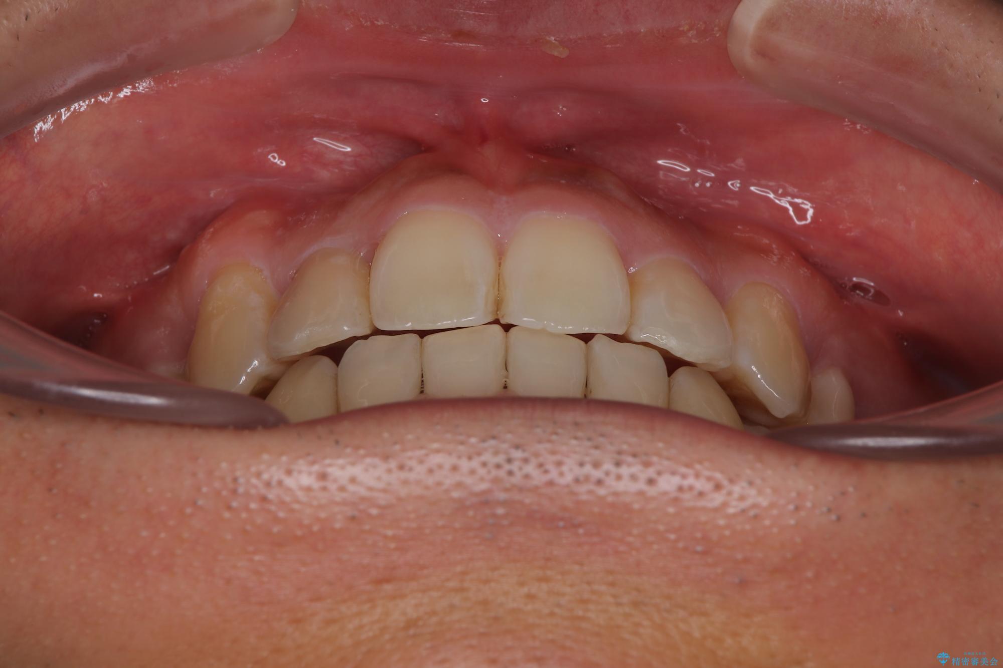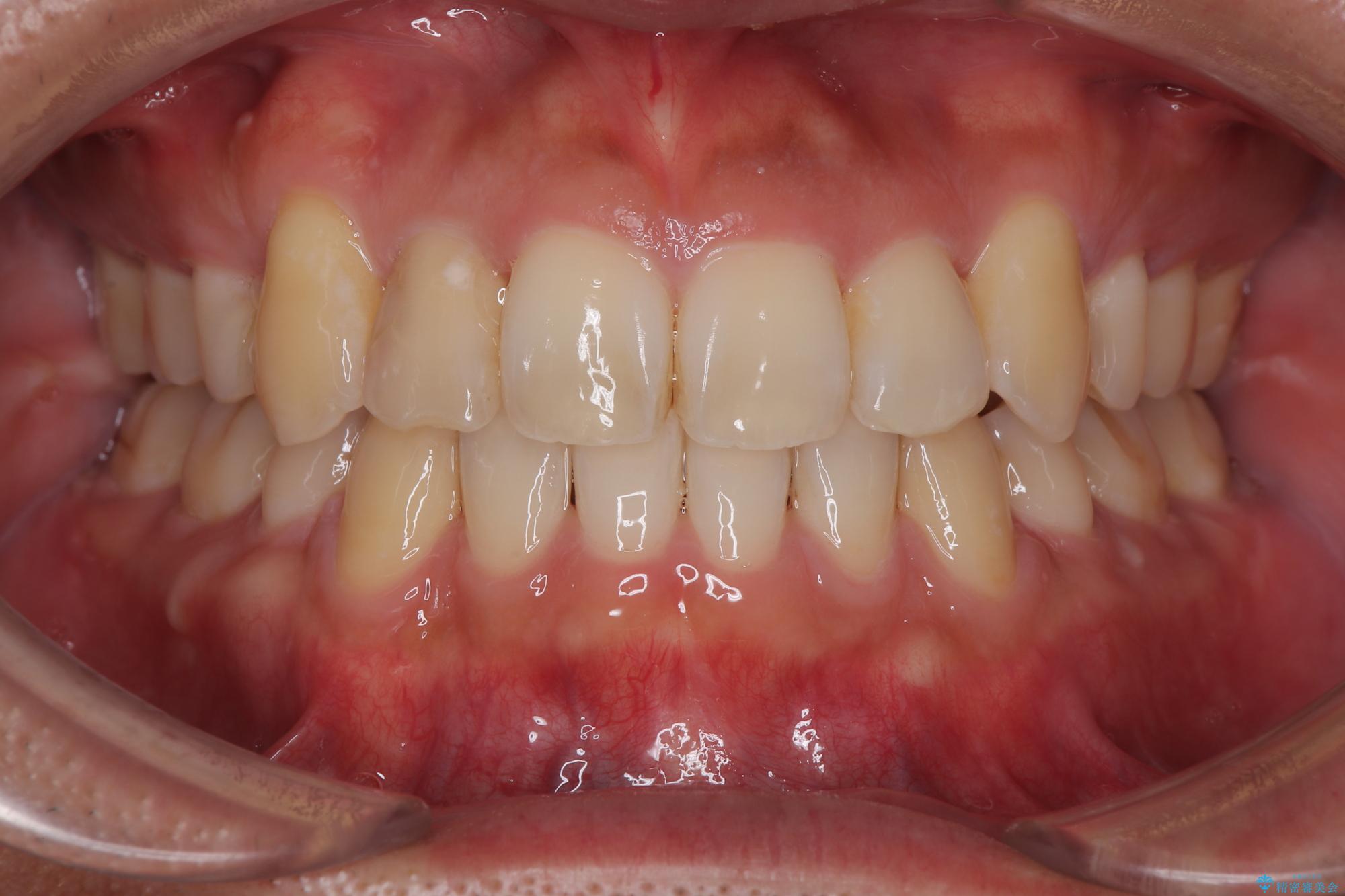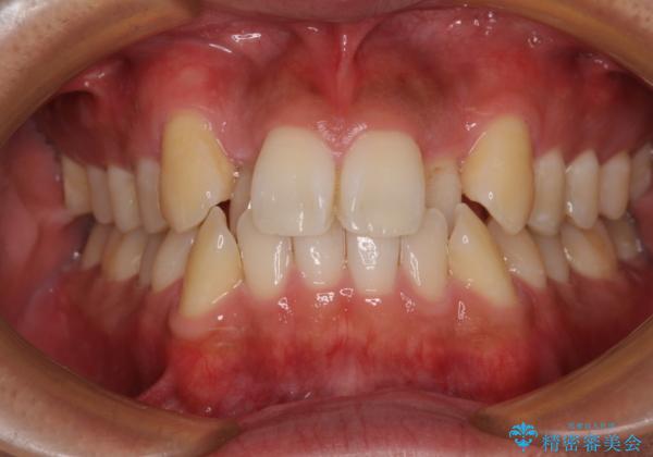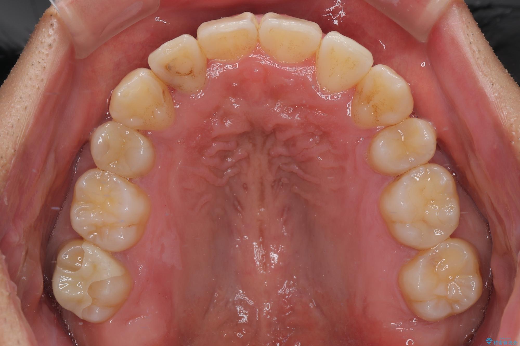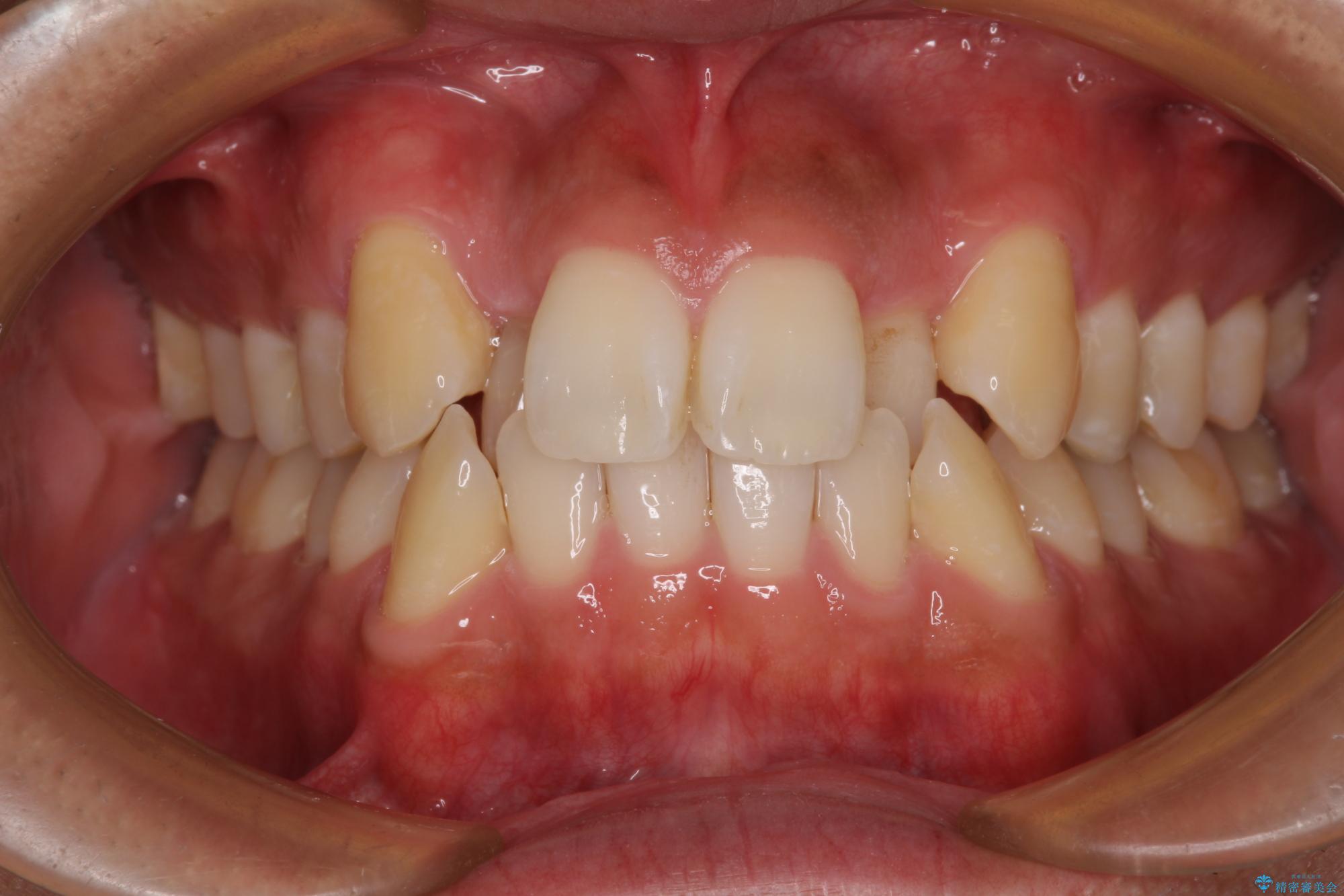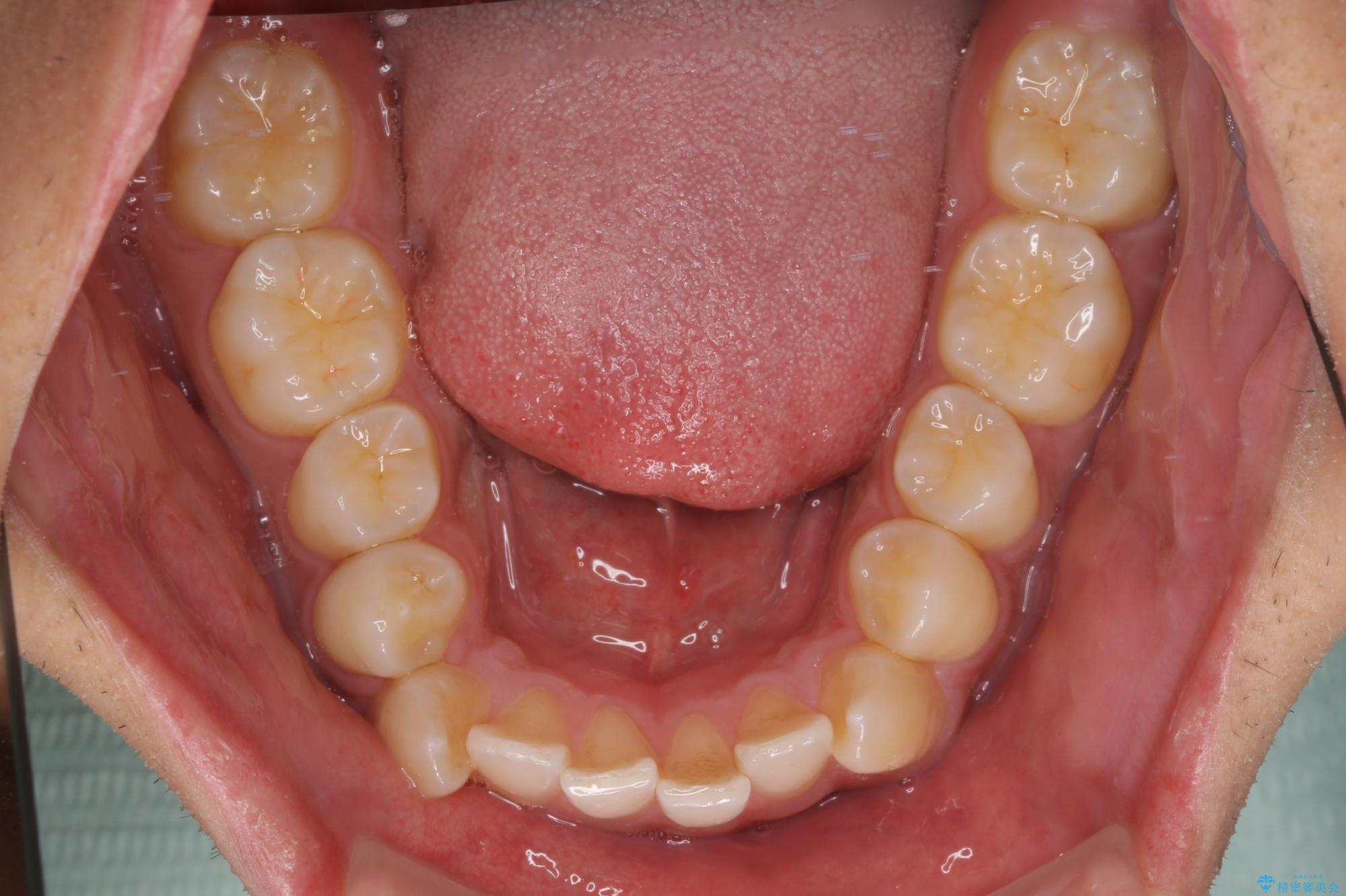 上下の前歯部に強い叢生(ガタガタの歯並び)があり、そのまま歯を並べると出っ歯になってしまう可能性がありました。