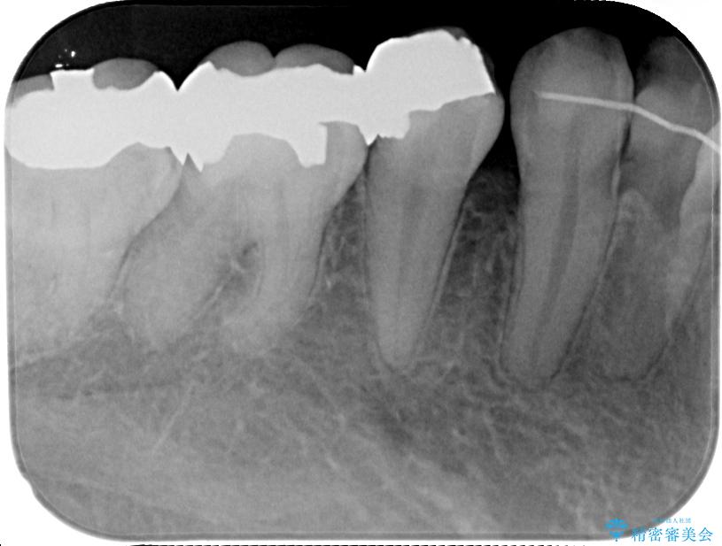 拡大鏡視野下でメタルインレー、虫歯を除去しフルジルコニアクラウンに適した形に整えました。