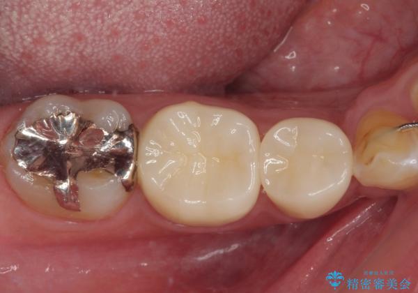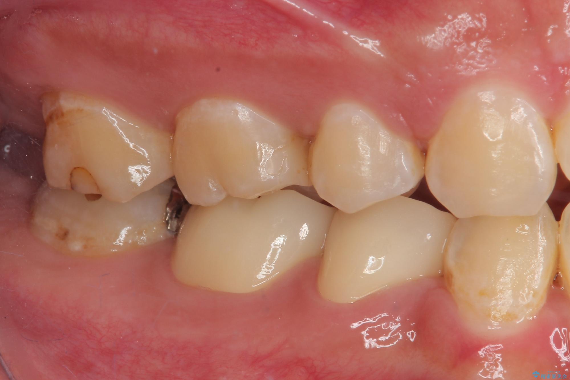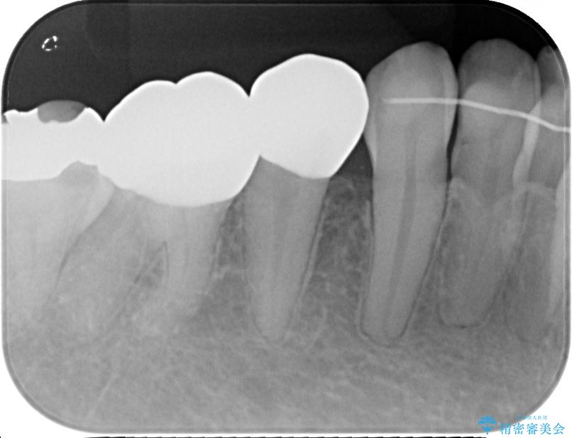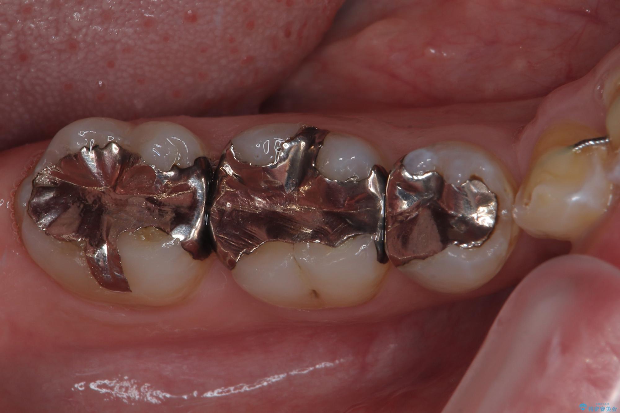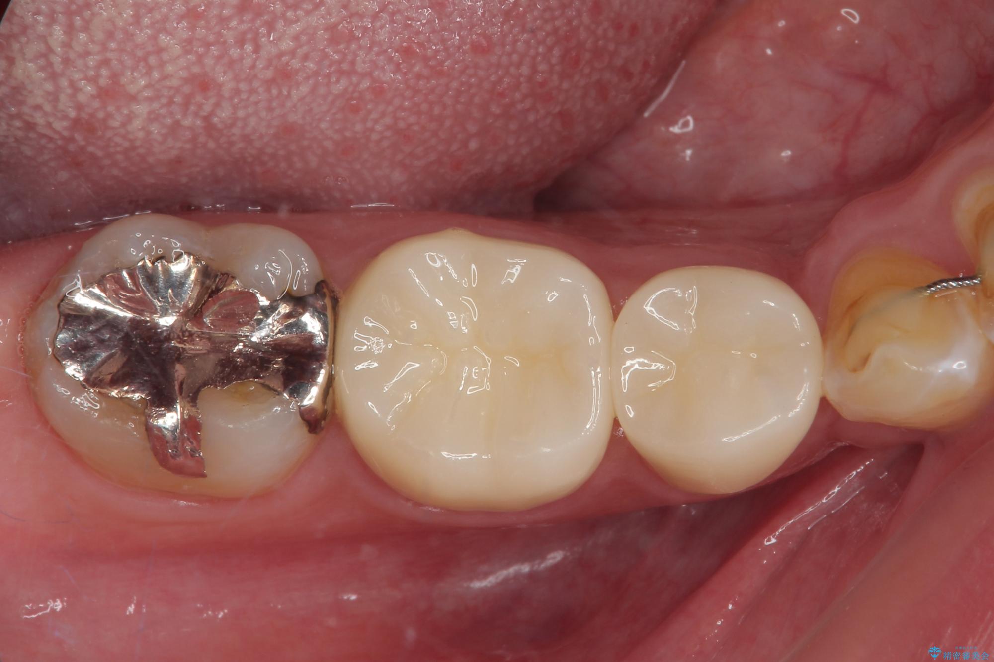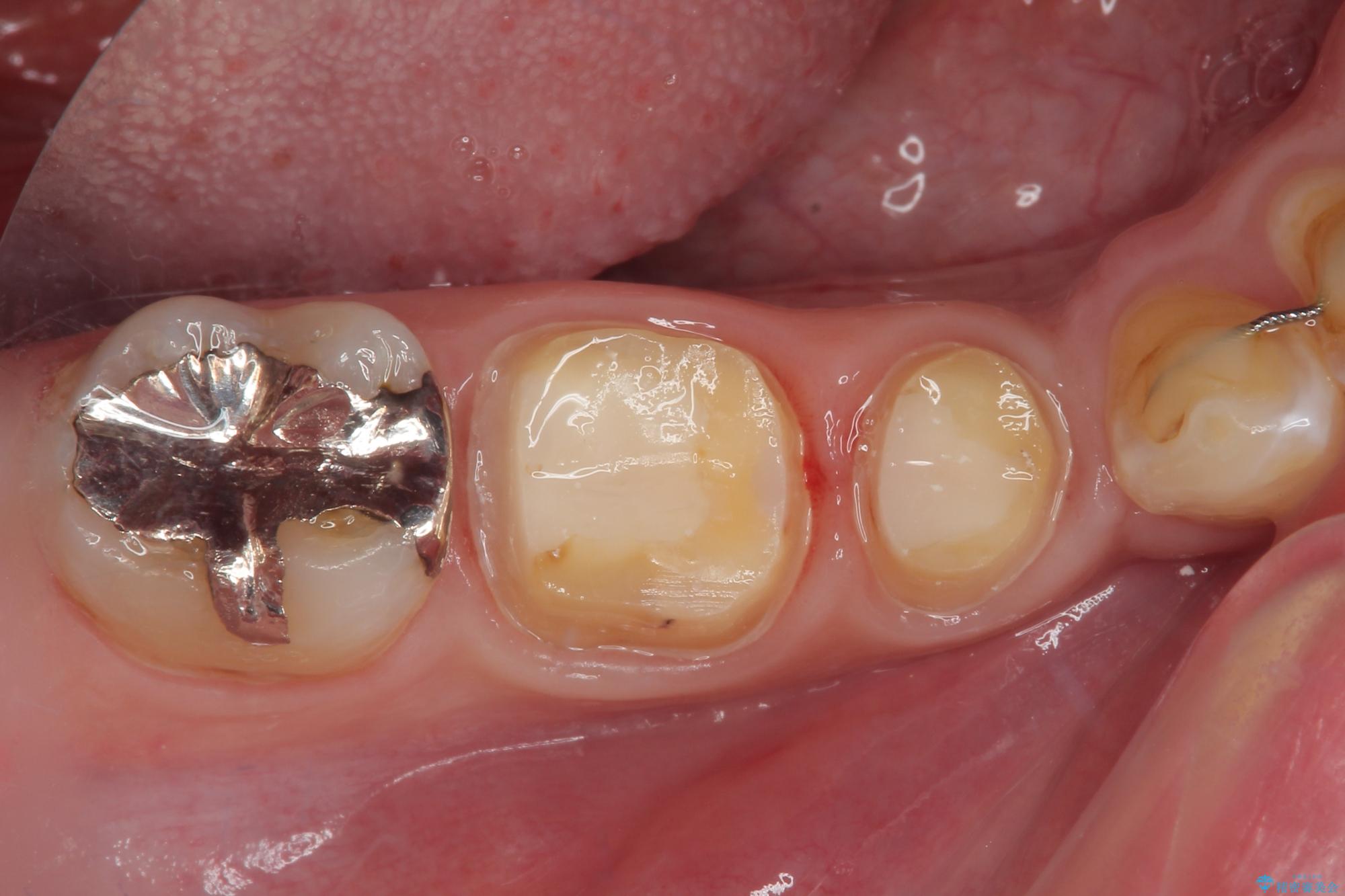 - 当院にて矯正治療を終えた患者様で銀歯を白くしたいとのことで来院された患者様です。神経の反応を確認し詰め物の範囲も大きいためフルジルコニアクラウンにて治療を行うことにしました。