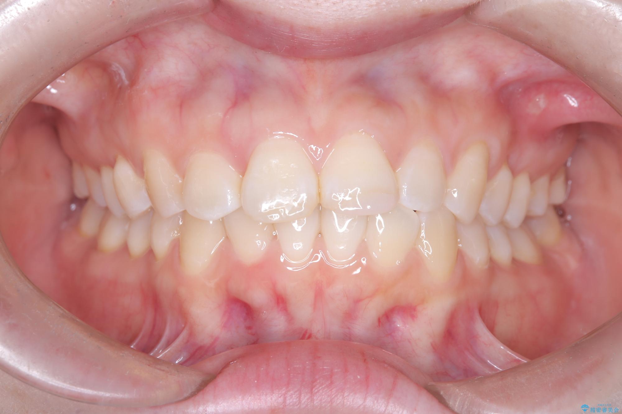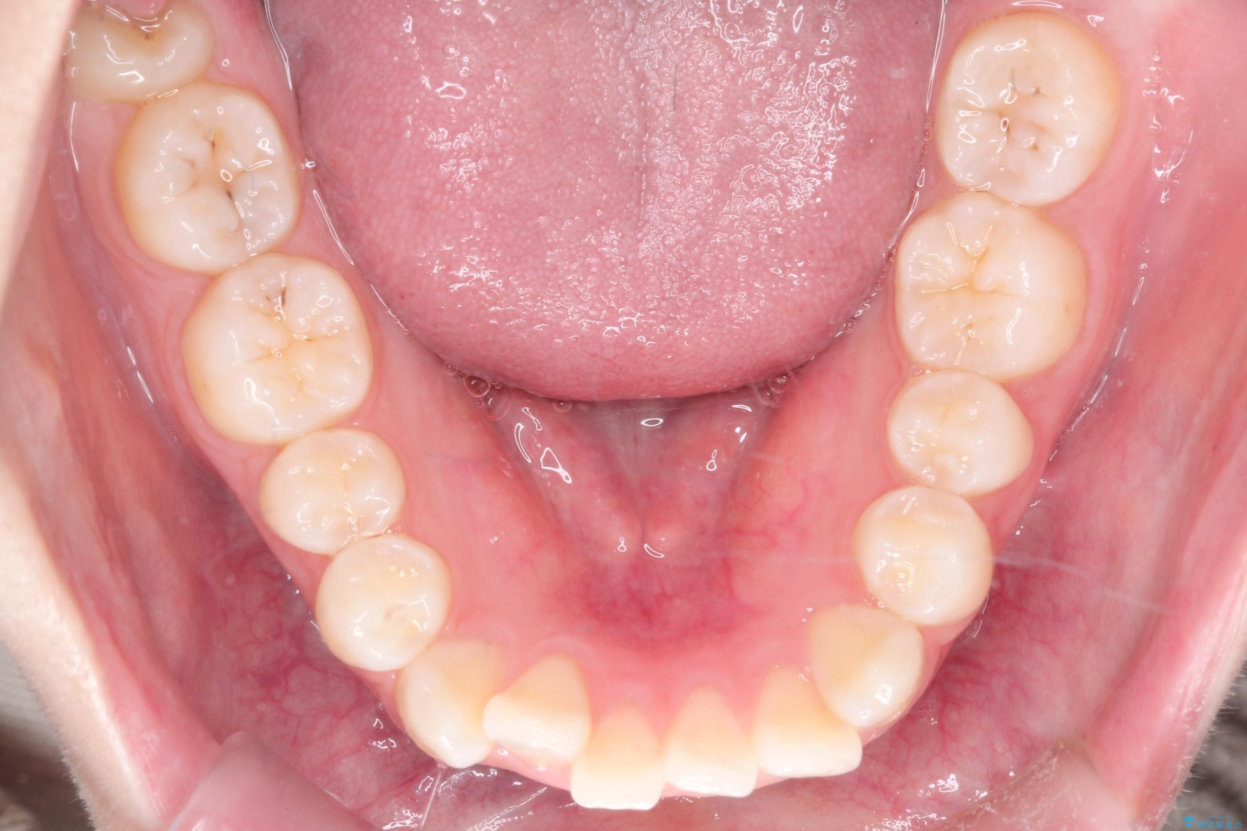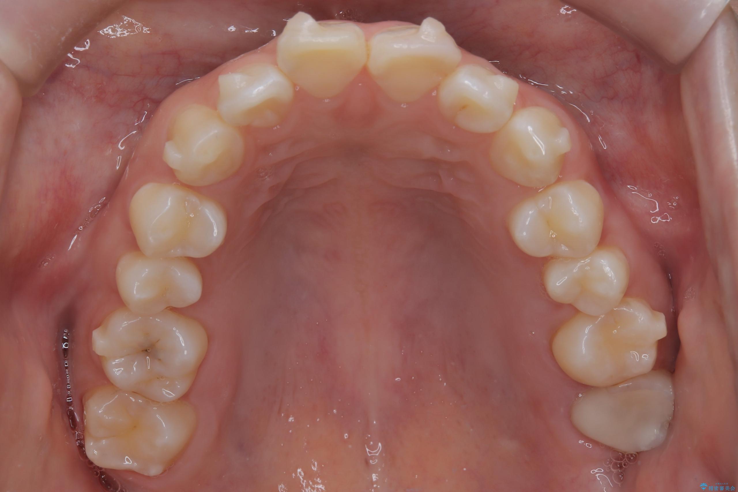 今回の矯正治療では、透明なマウスピース型の装置インビザラインを使用しました。この装置は取り外し可能で、日常生活で目立ちません。治療は、緻密に計算された計画に基づき、段階的に作製されたマウスピースを交換していくことで、奥歯から順に全体を後方へ移動させる遠心移動を実施。これにより、前歯を並べるための十分なスペースが確保され、デコボコが解消されました。抜歯することなく、機能的にも審美的にも整った美しい歯並びを獲得していただけました。