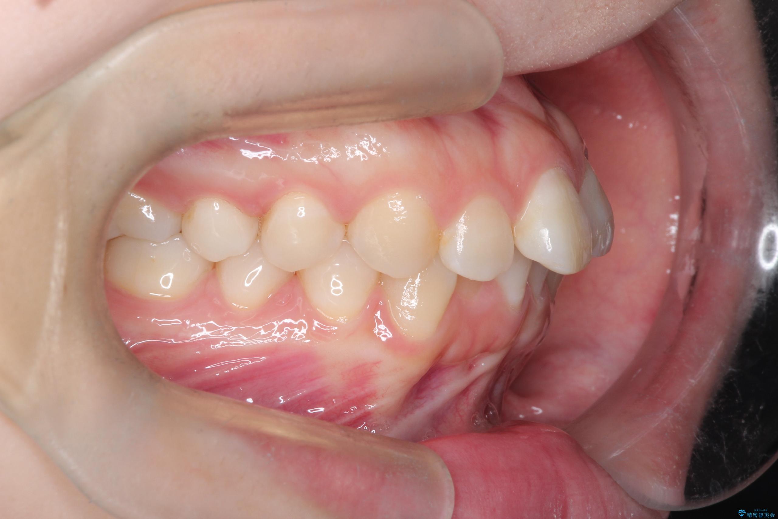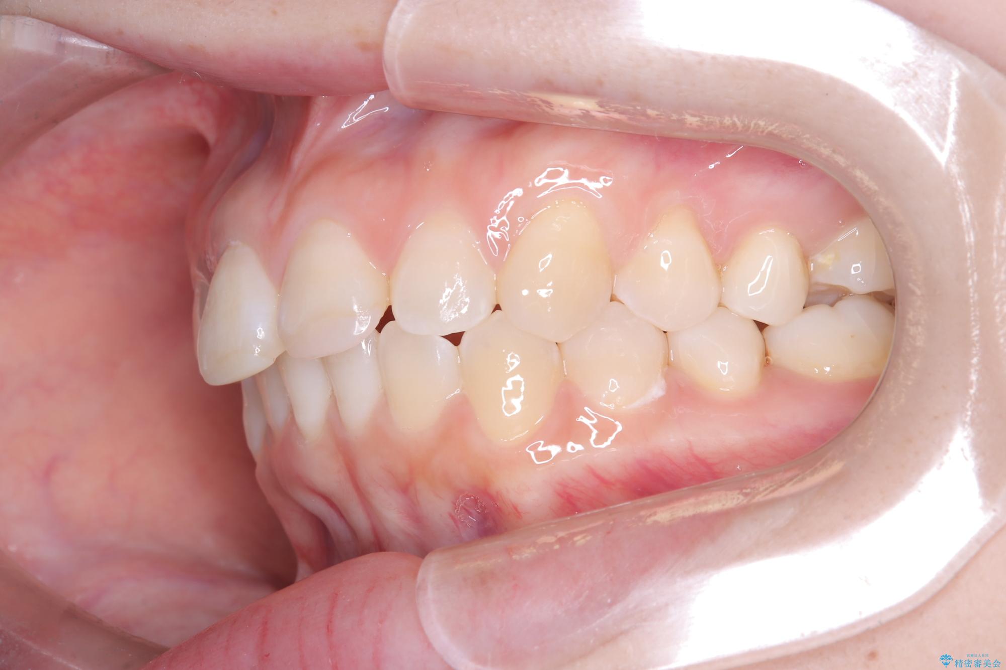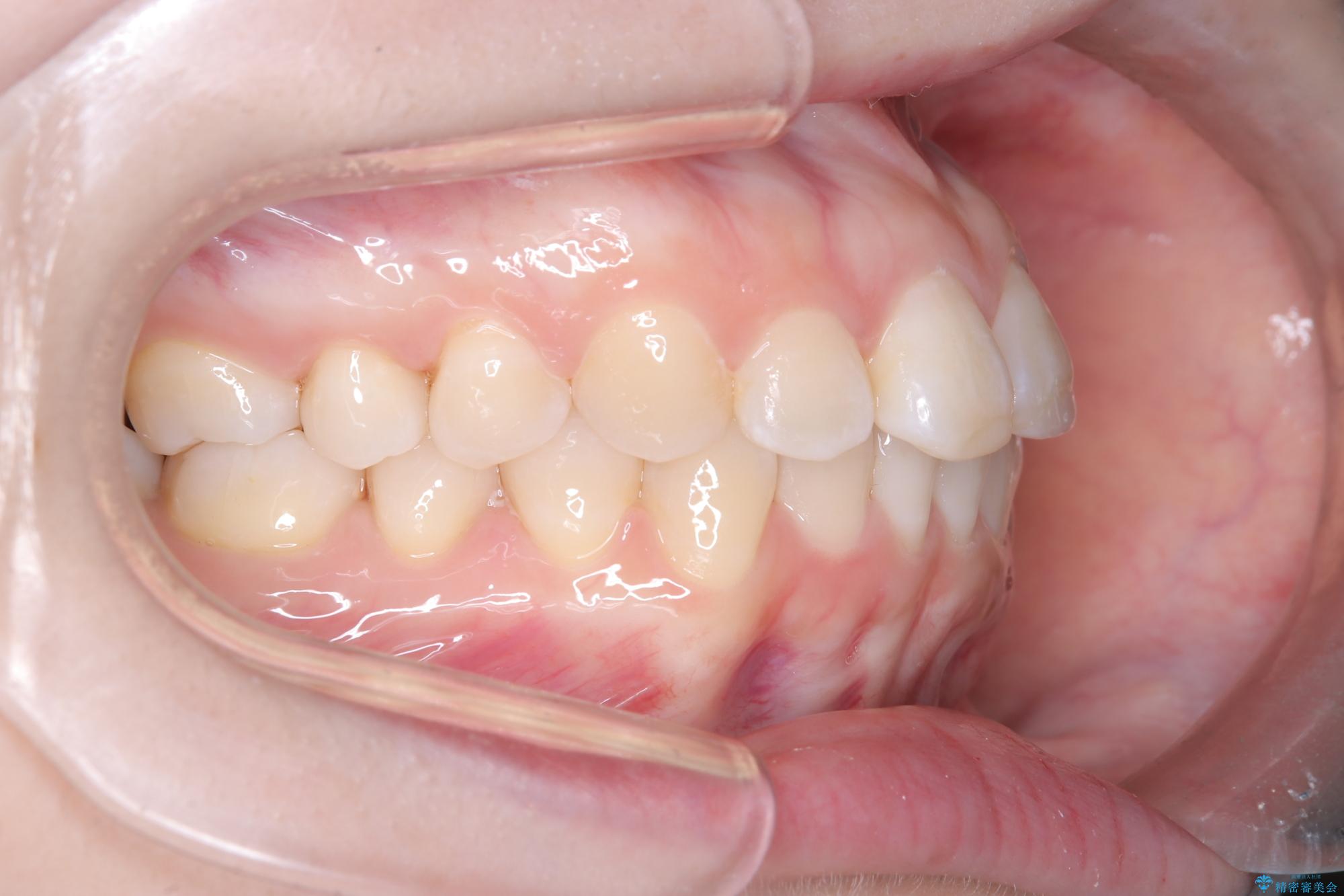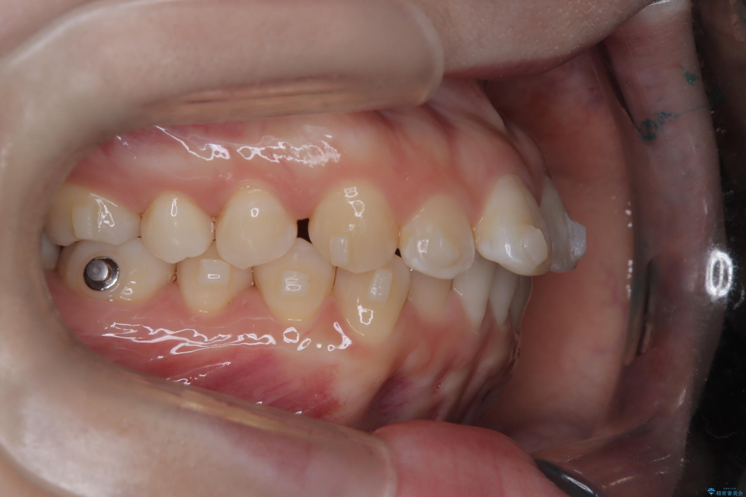 今回の矯正治療では、透明なマウスピース型の装置インビザラインを使用しました。この装置は取り外し可能で、日常生活で目立ちません。治療は、緻密に計算された計画に基づき、段階的に作製されたマウスピースを交換していくことで、奥歯から順に全体を後方へ移動させる遠心移動を実施。これにより、前歯を並べるための十分なスペースが確保され、デコボコが解消されました。抜歯することなく、機能的にも審美的にも整った美しい歯並びを獲得していただけました。