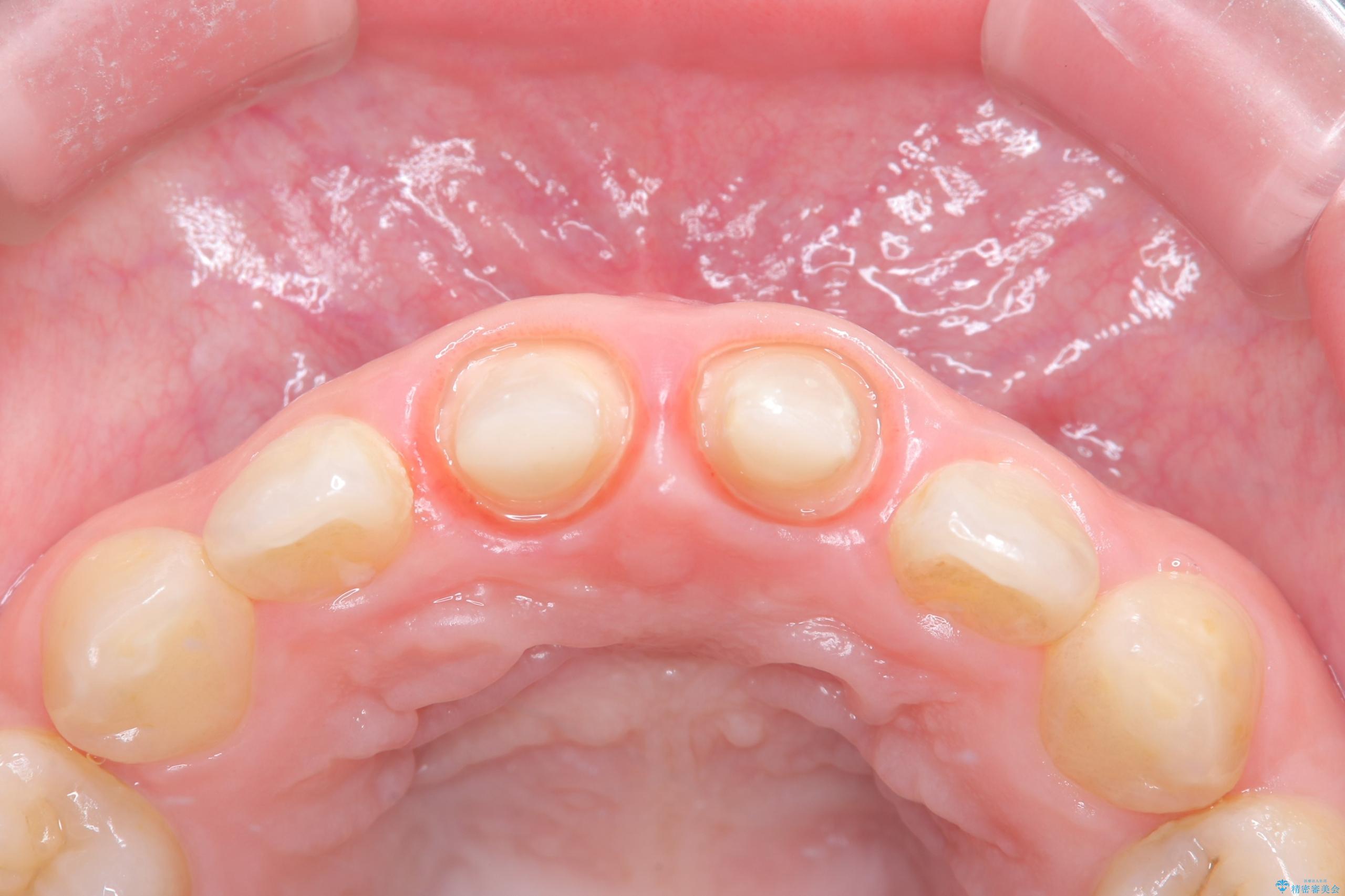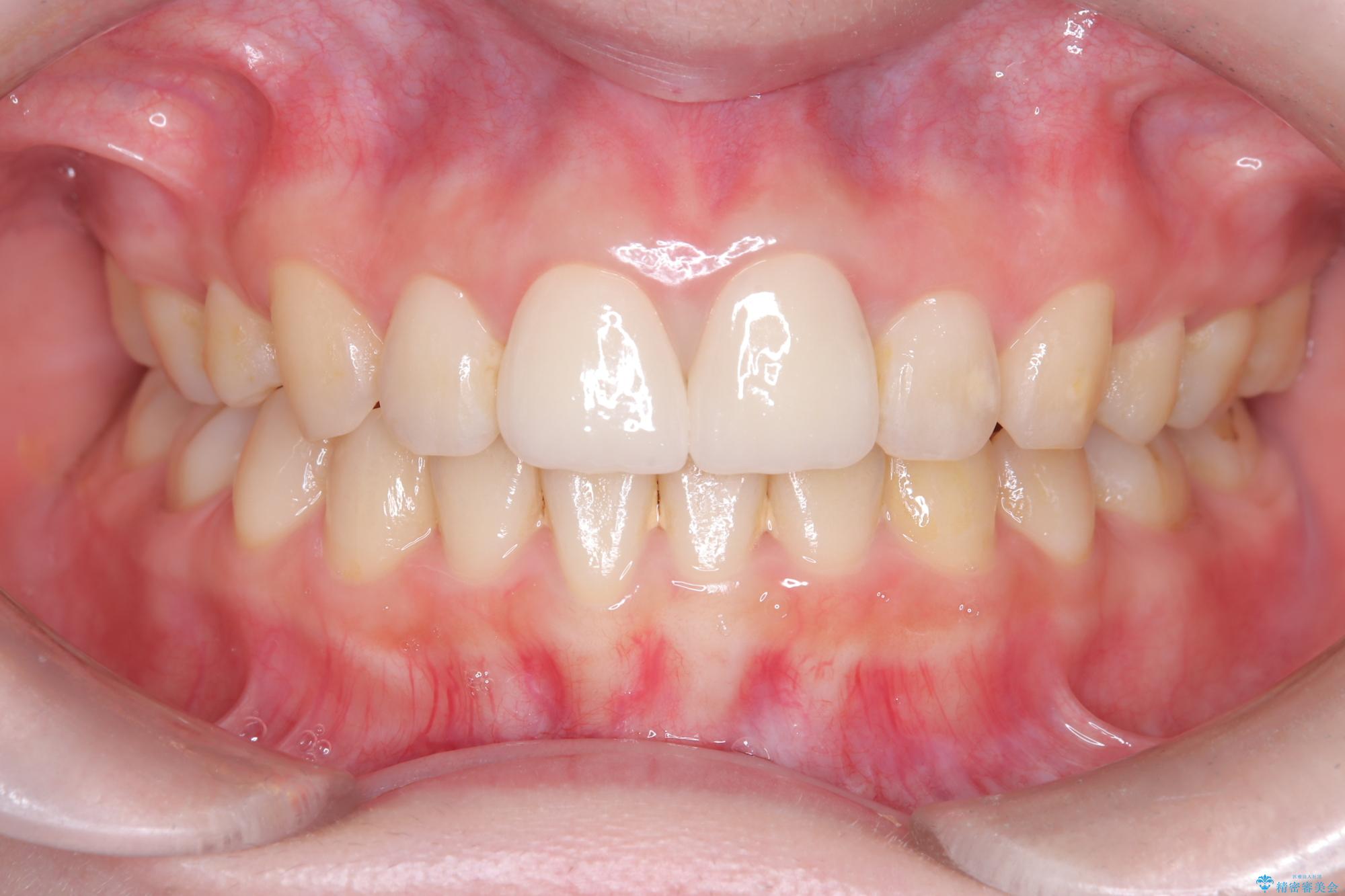 治療は、再感染の原因となっていた粗な根管充填材を丁寧に取り除く精密根管治療から開始しました。治療中はラバーダムと歯科用顕微鏡を使用し、根管内を徹底的に清掃・消毒。根の先まで緊密に薬を詰めることで、再発リスクを最小限に抑えました。根管治療の完了後、歯ぐきの状態を整え、周囲の歯と調和するオールセラミッククラウンを作製。金属を一切使わないため、透明感のある自然な仕上がりとなり、長年の見た目のコンプレックスも解消。歯の内部から表面までを根本的に改善することができました。