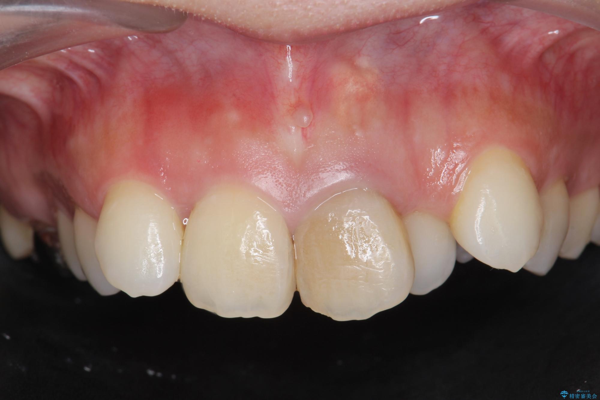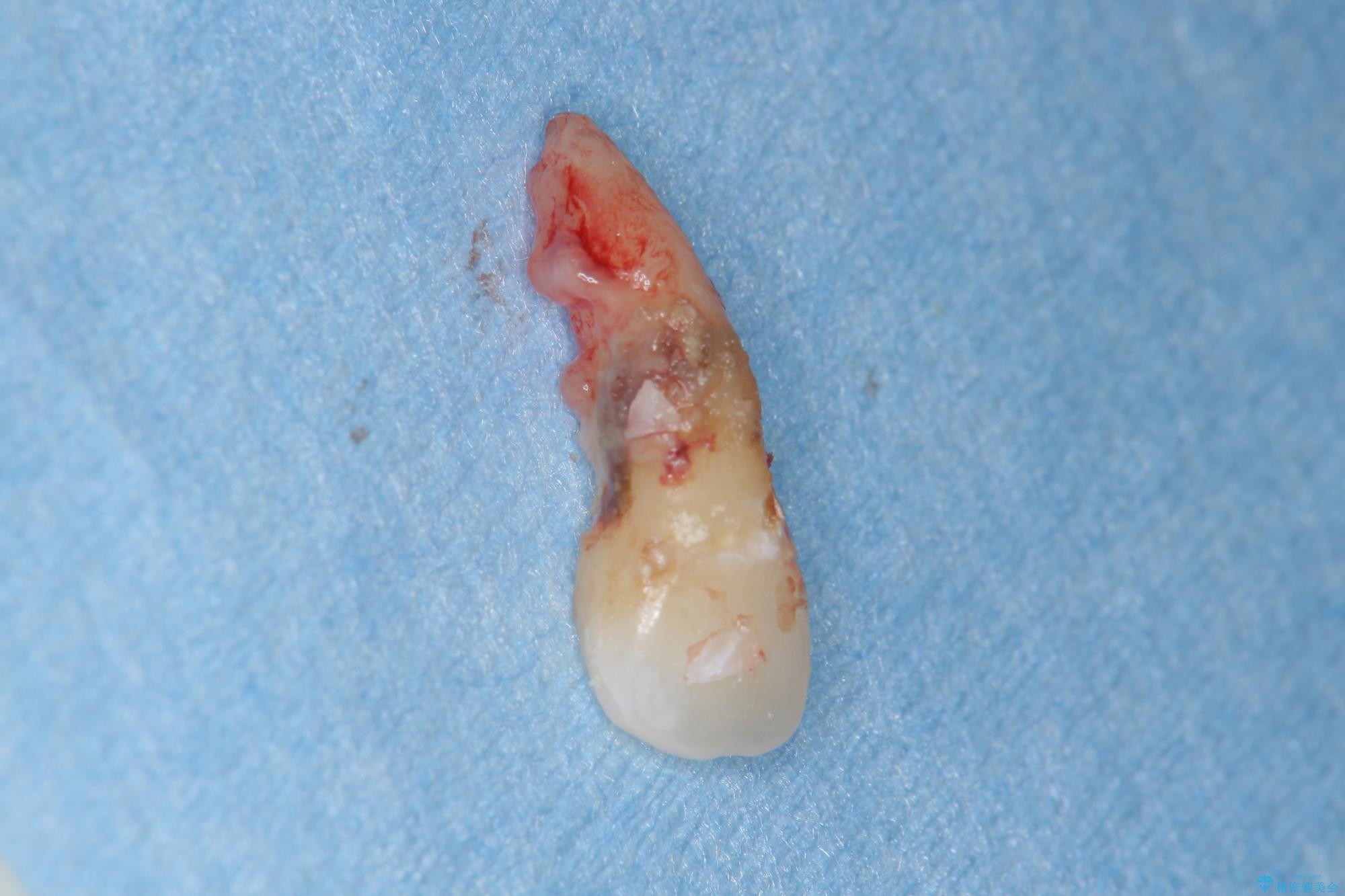 歯ブラシがしづらく虫歯の原因となっている歯の位置の悪い右上側切歯の抜去を行います。