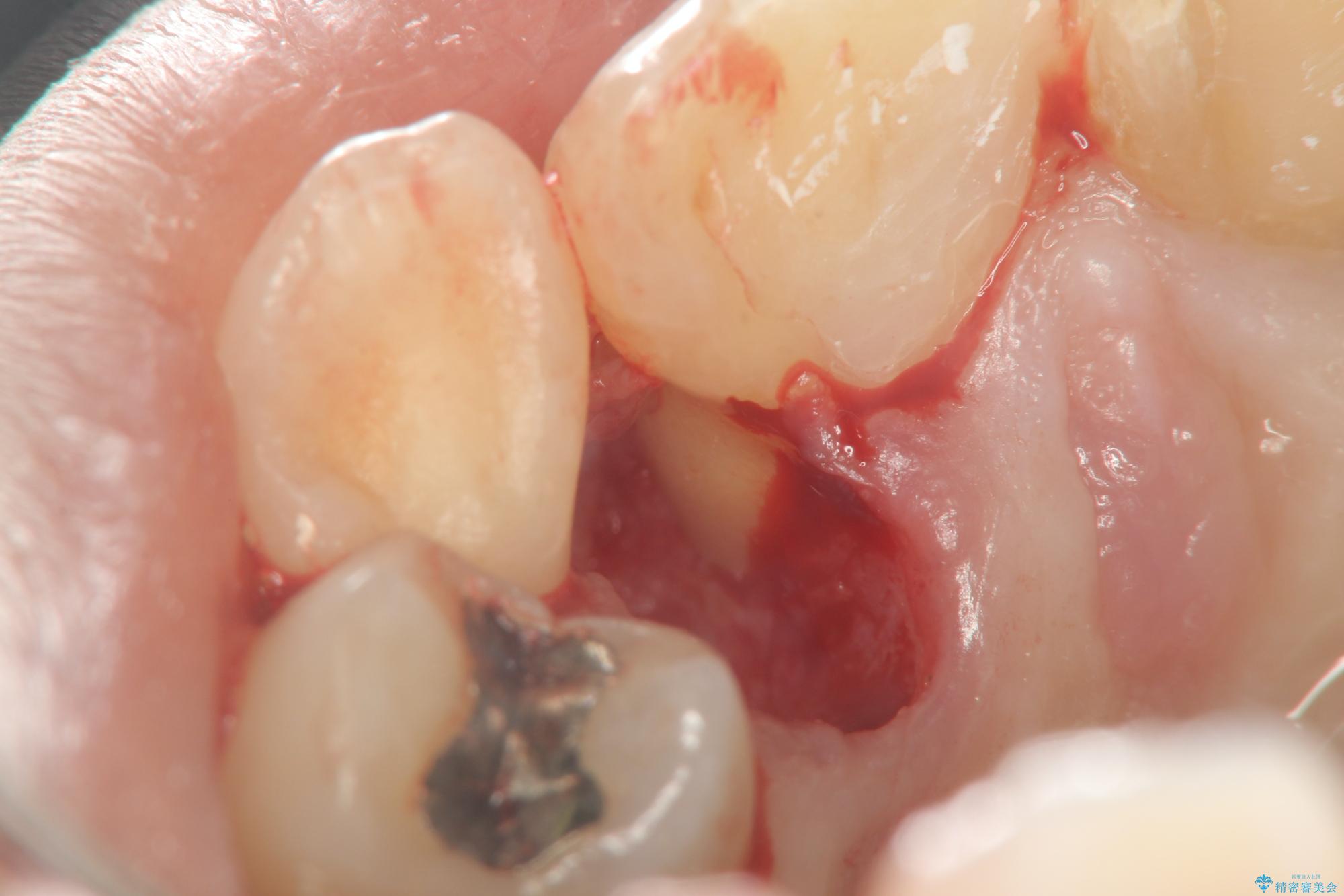 清掃を難しくしている歯を抜去することで虫歯の再発を防ぐような治療方針としました。