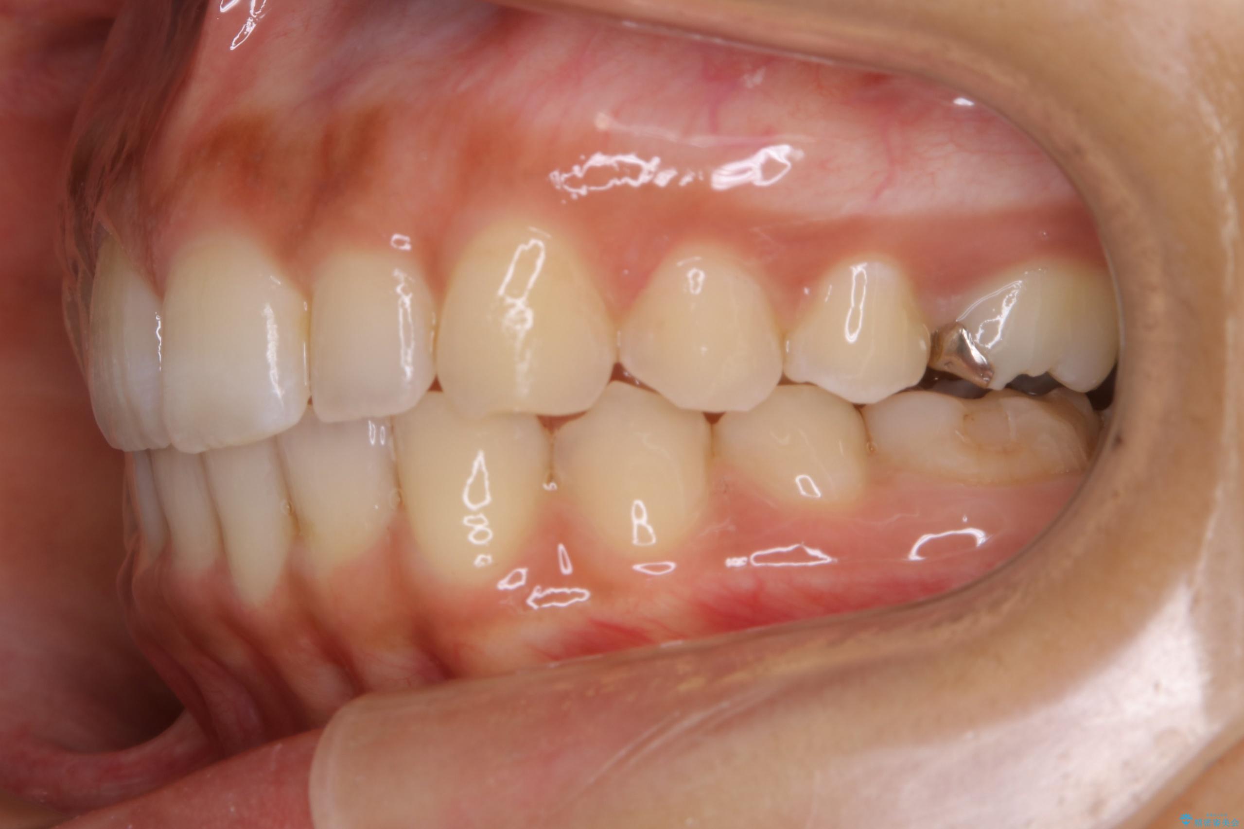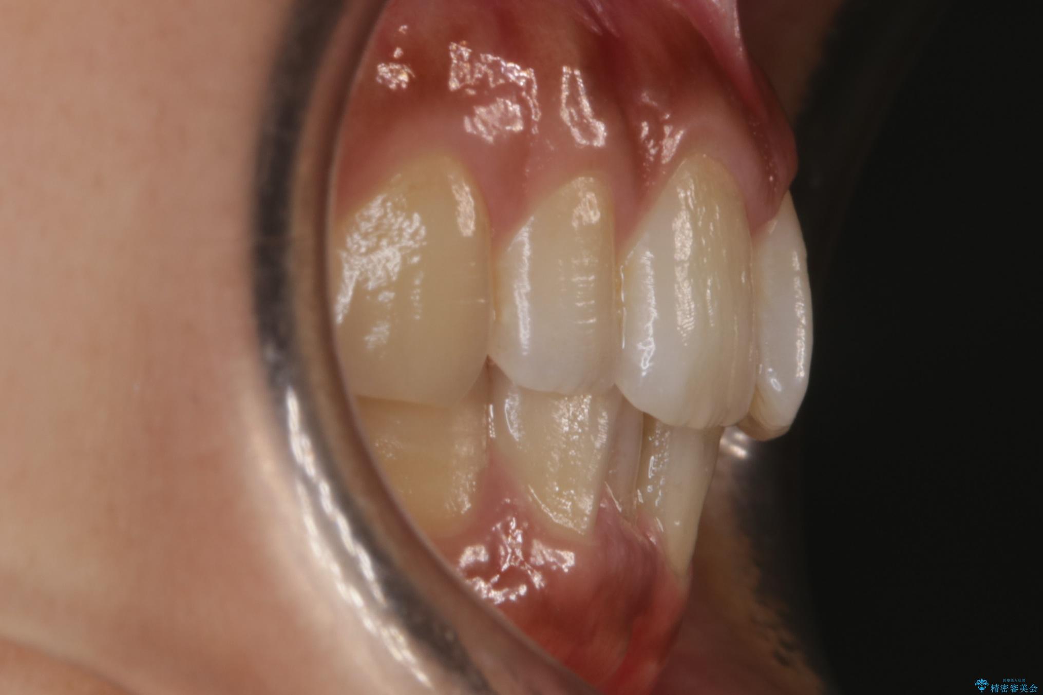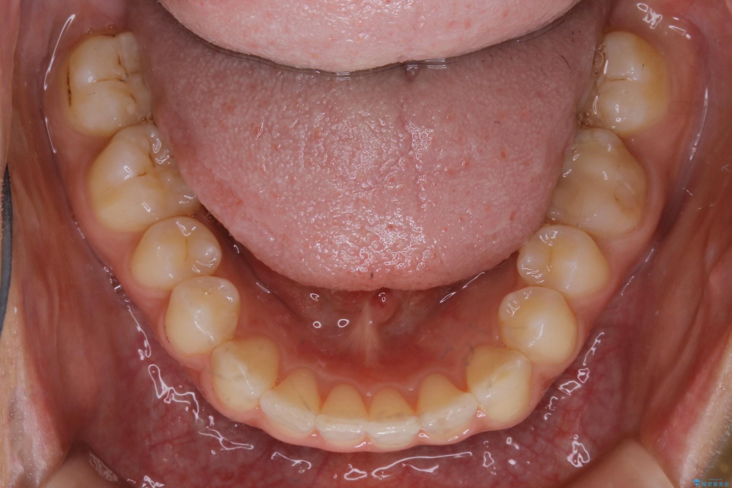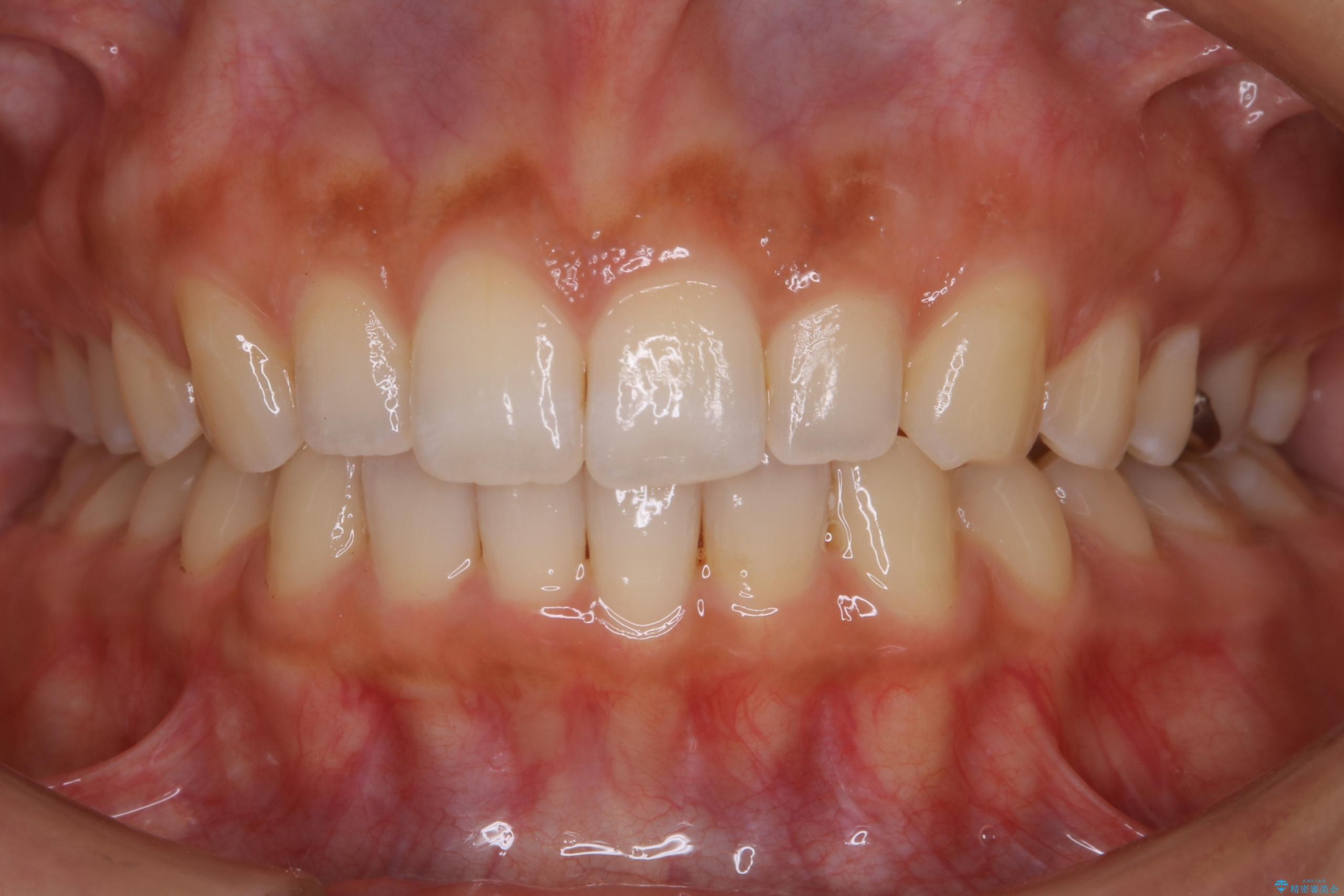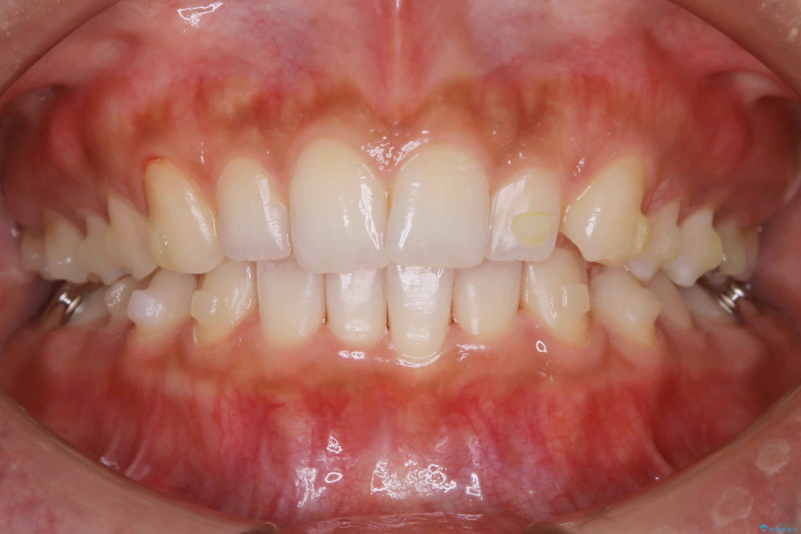 下の歯列に対して上の歯列が前に出ている噛み合わせだったので、マウスピースを使いつつゴムかけをしてもらってガタつきを改善しながら噛み合わせを適正な位置まで移動させました。