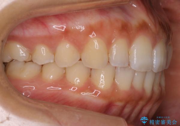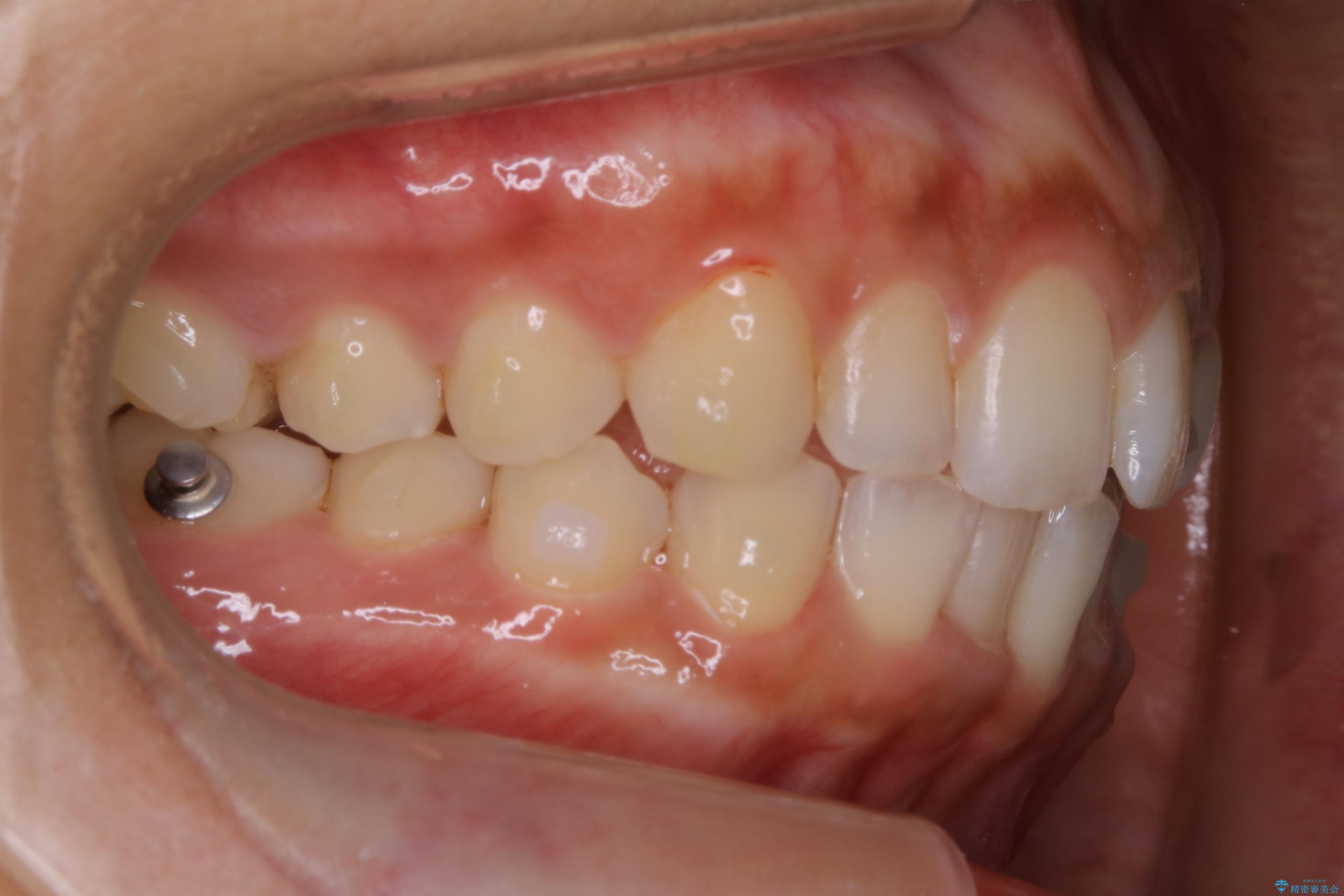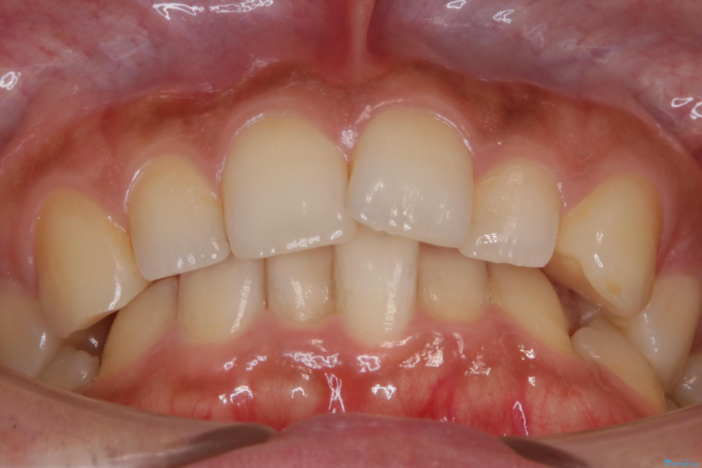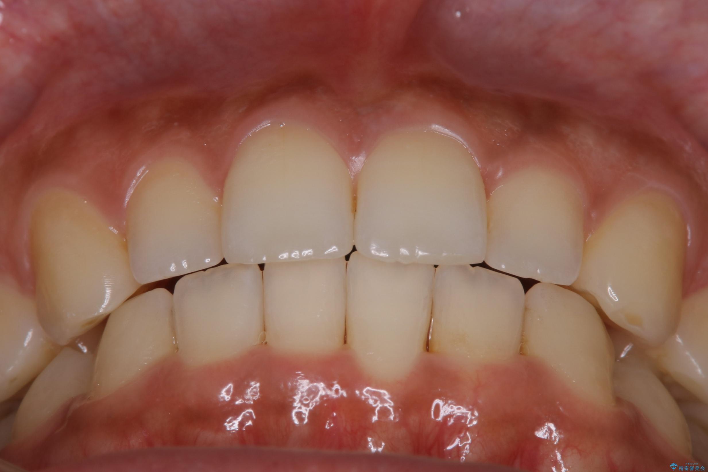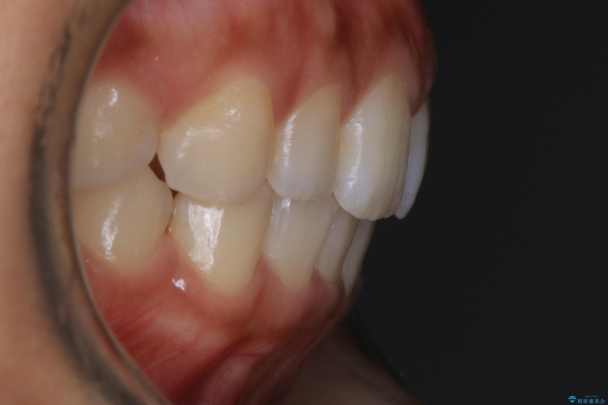 下の歯列に対して上の歯列が前に出ている噛み合わせだったので、マウスピースを使いつつゴムかけをしてもらってガタつきを改善しながら噛み合わせを適正な位置まで移動させました。