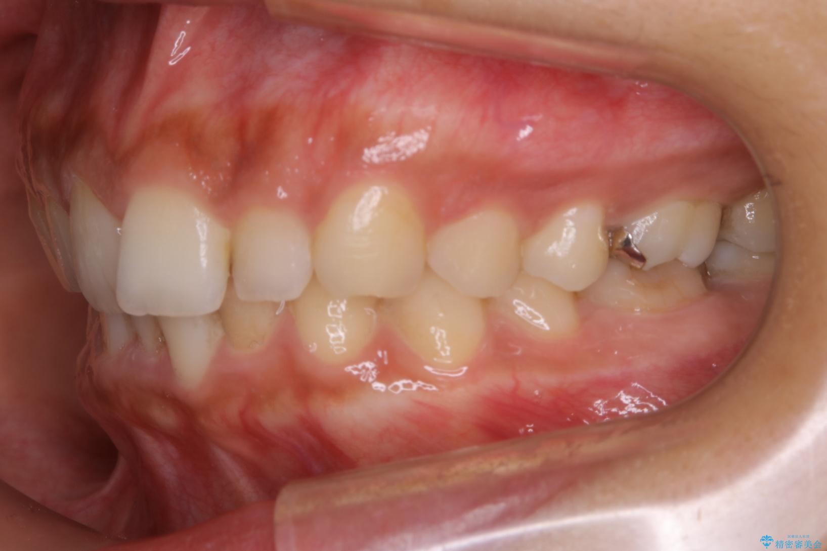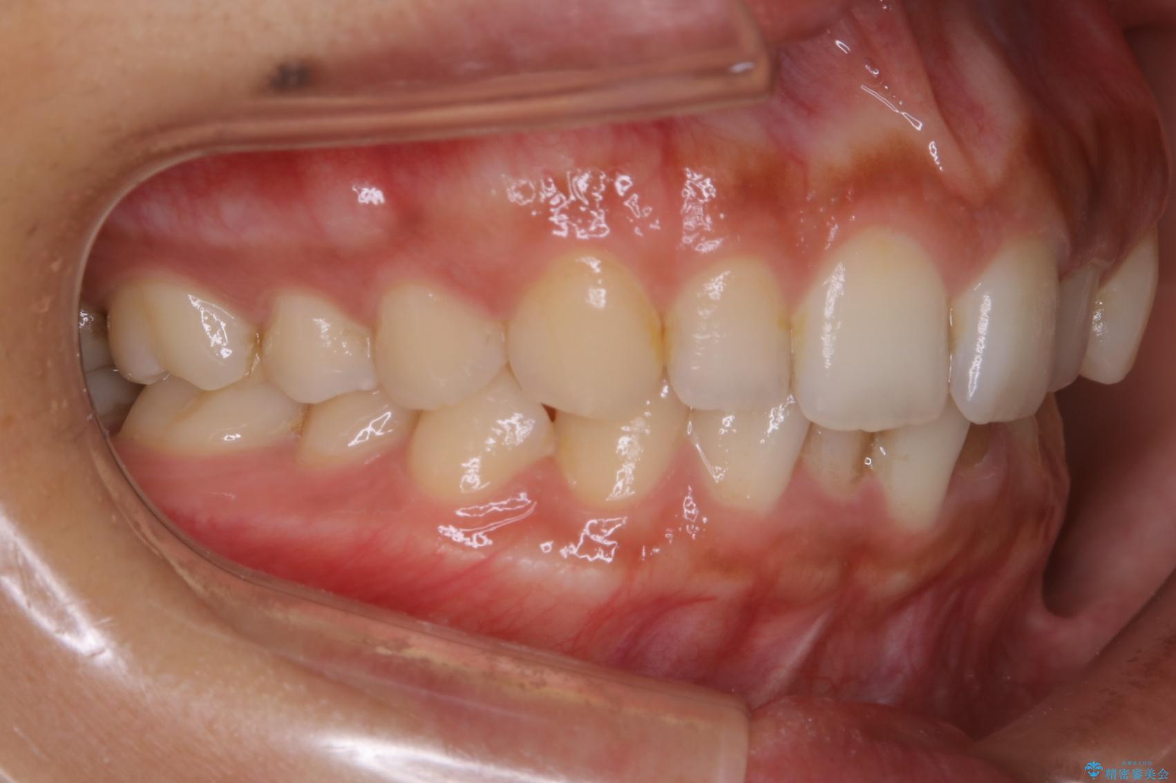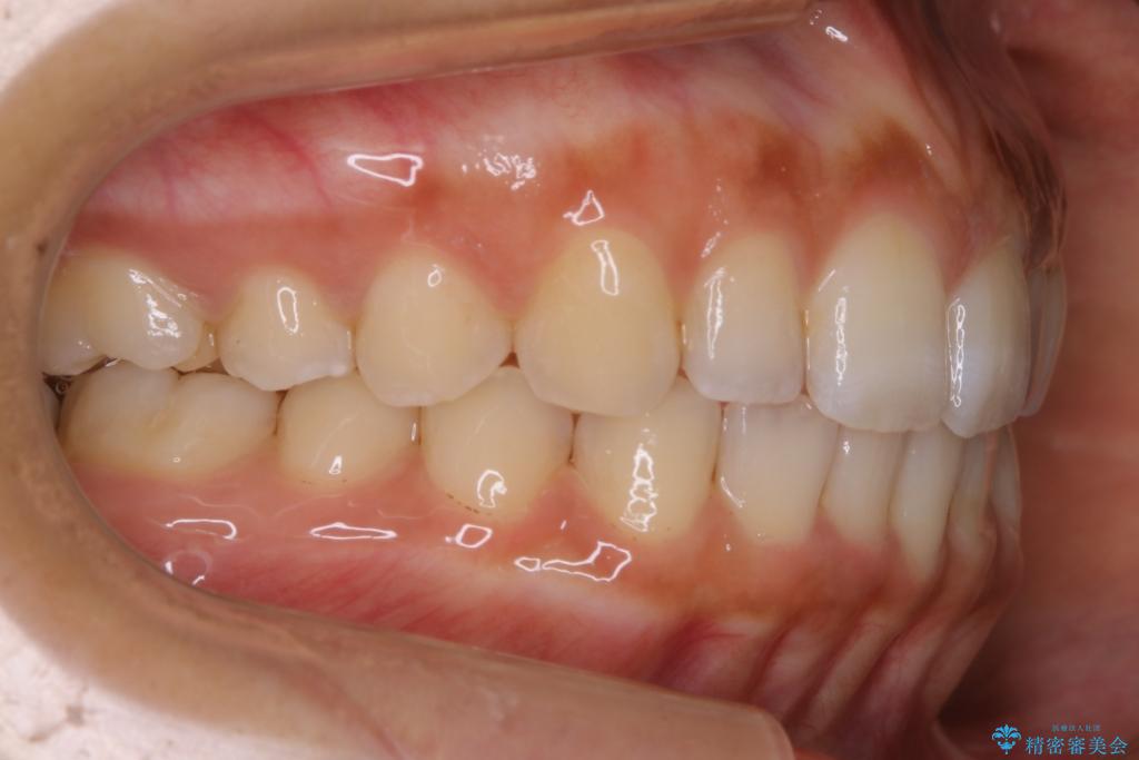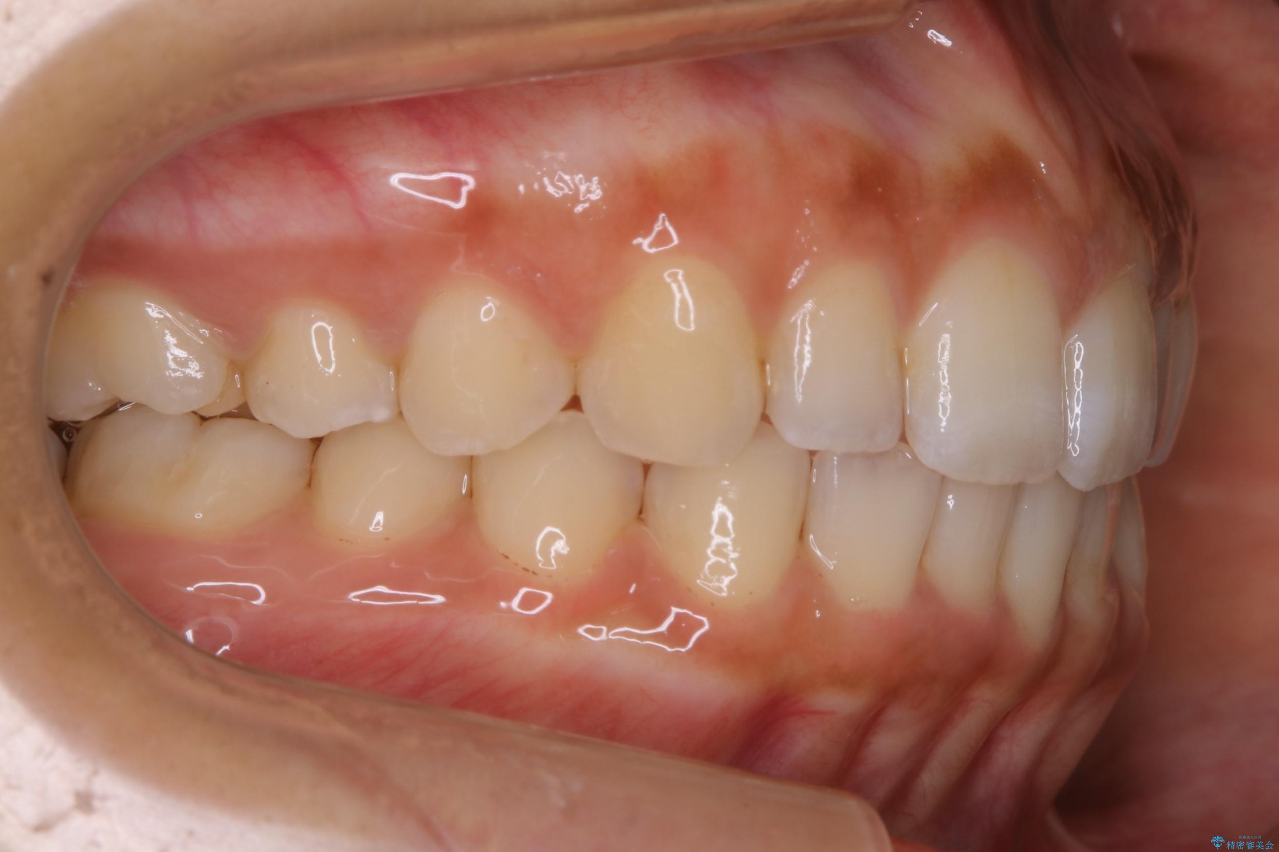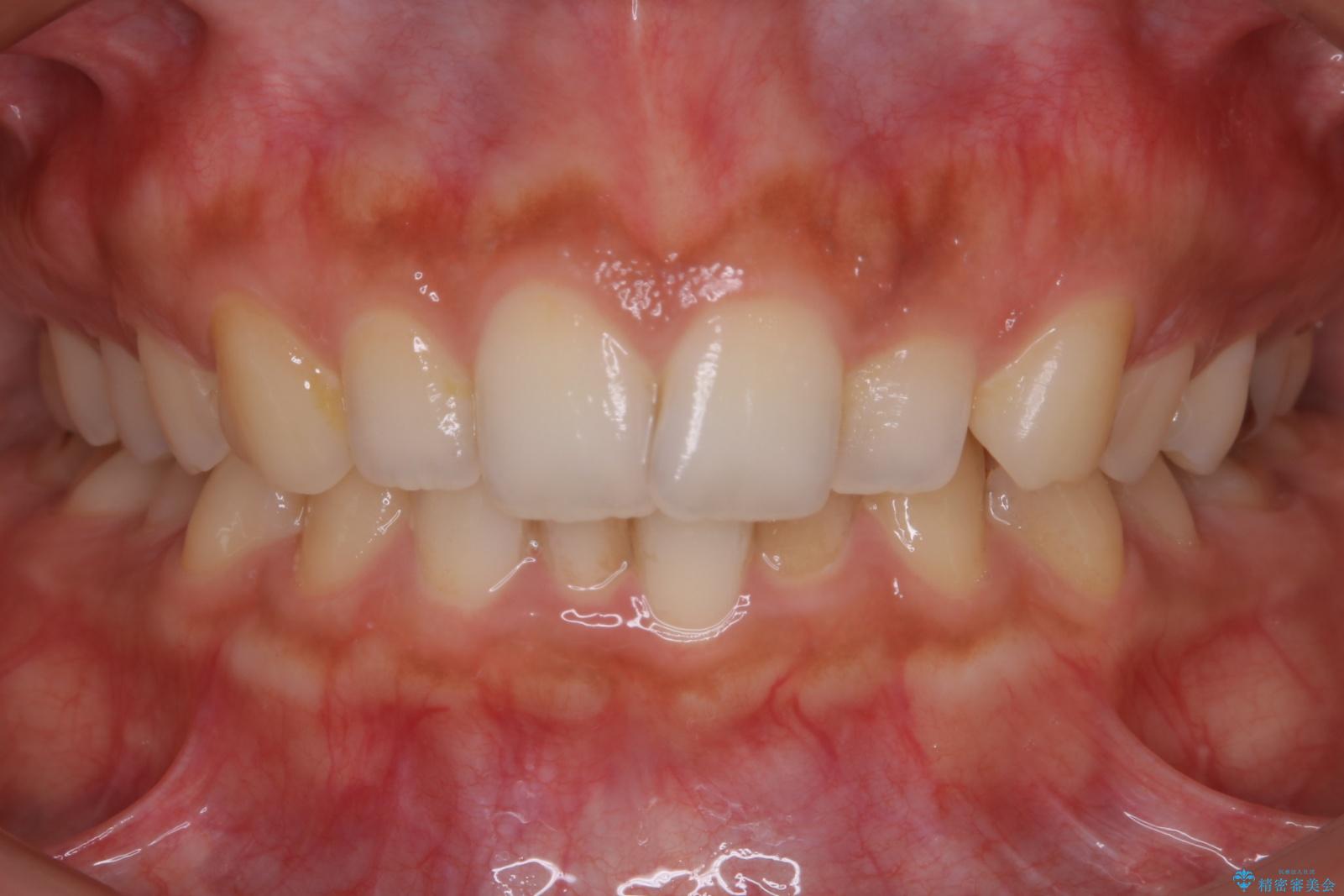 下の歯列に対して上の歯列が前に出ている噛み合わせだったので、マウスピースを使いつつゴムかけをしてもらってガタつきを改善しながら噛み合わせを適正な位置まで移動させました。