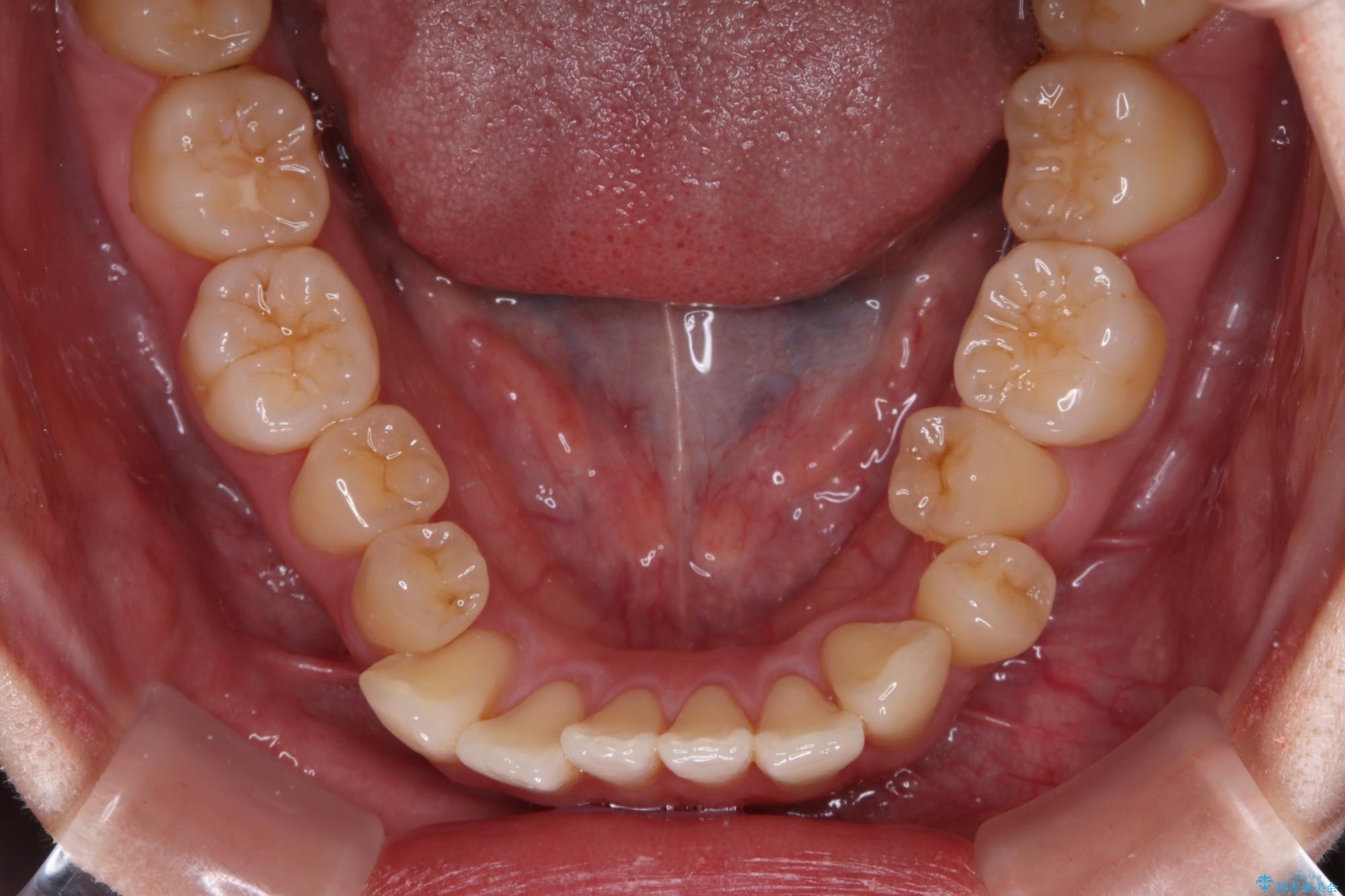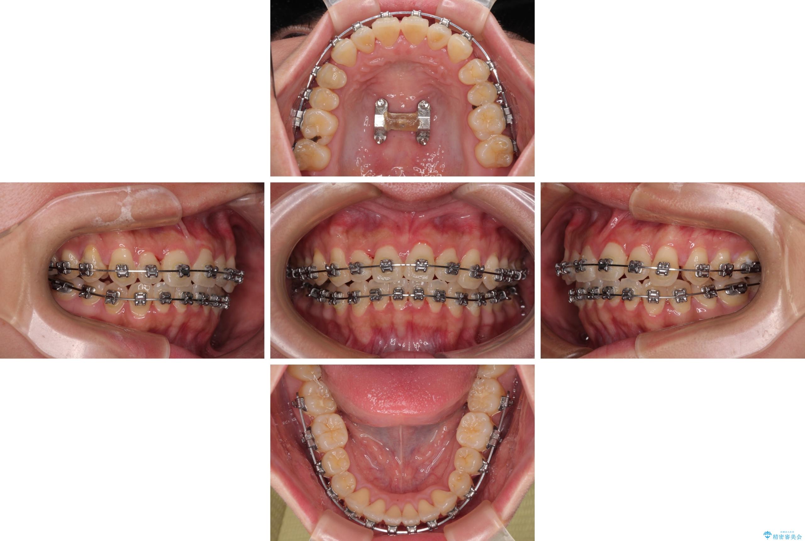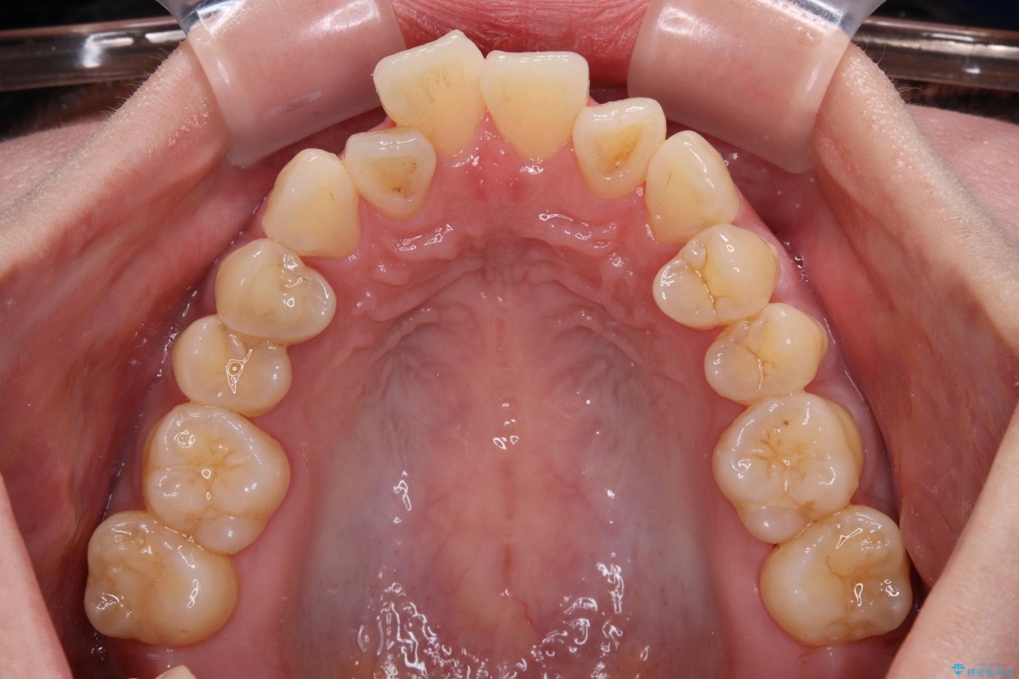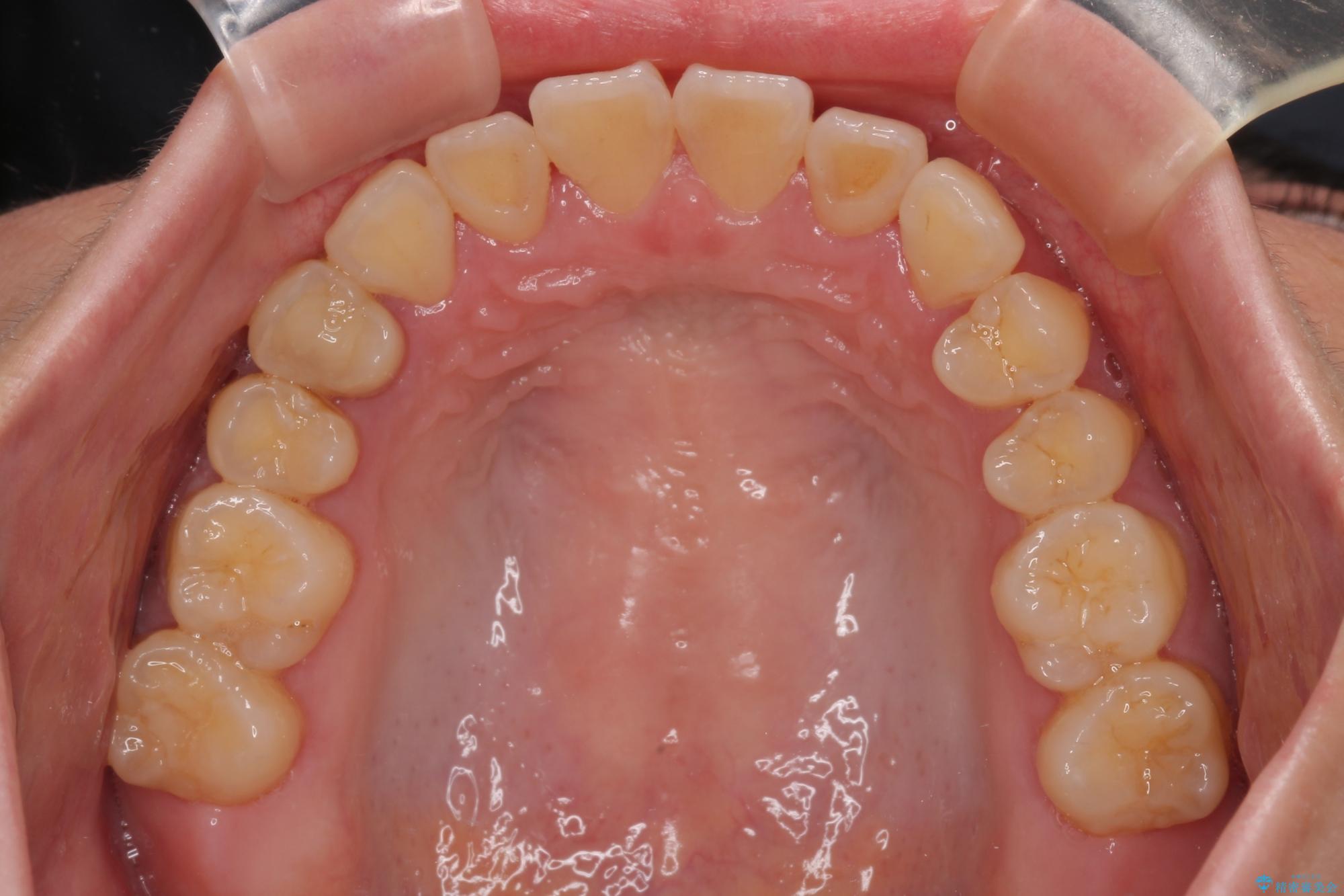 上顎歯列が下顎の歯列に対して狭小であり、一部下顎の奥歯が上顎よりも外側に位置している状態でした。