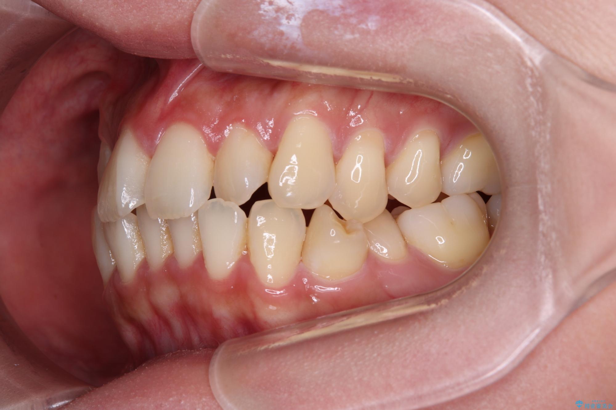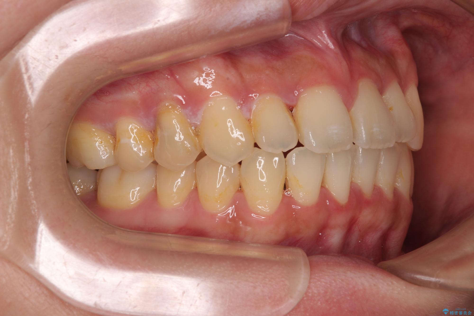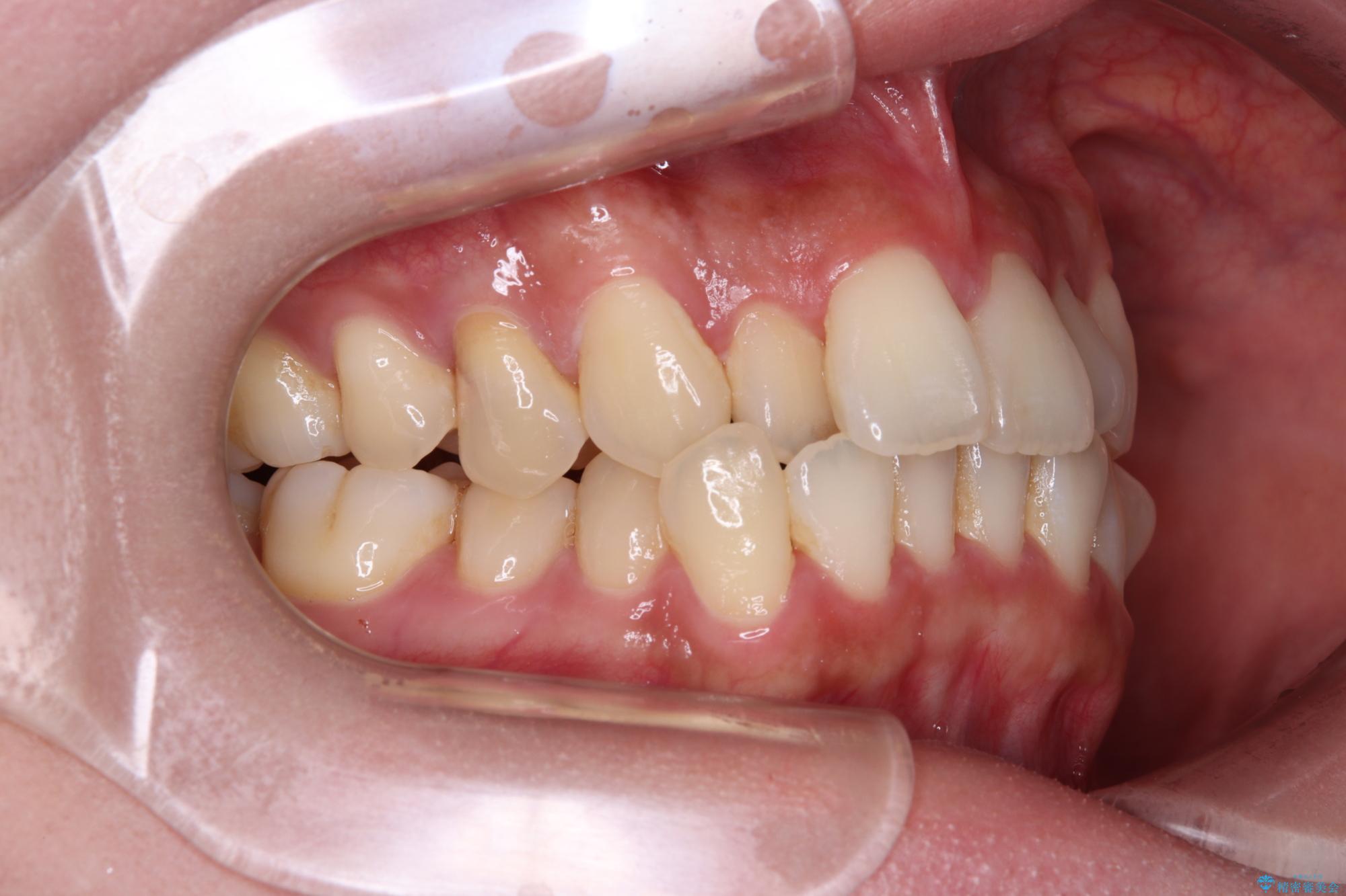 上顎歯列が下顎の歯列に対して狭小であり、一部下顎の奥歯が上顎よりも外側に位置している状態でした。
