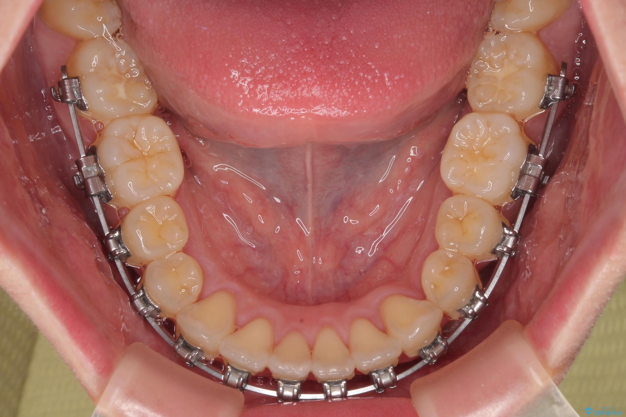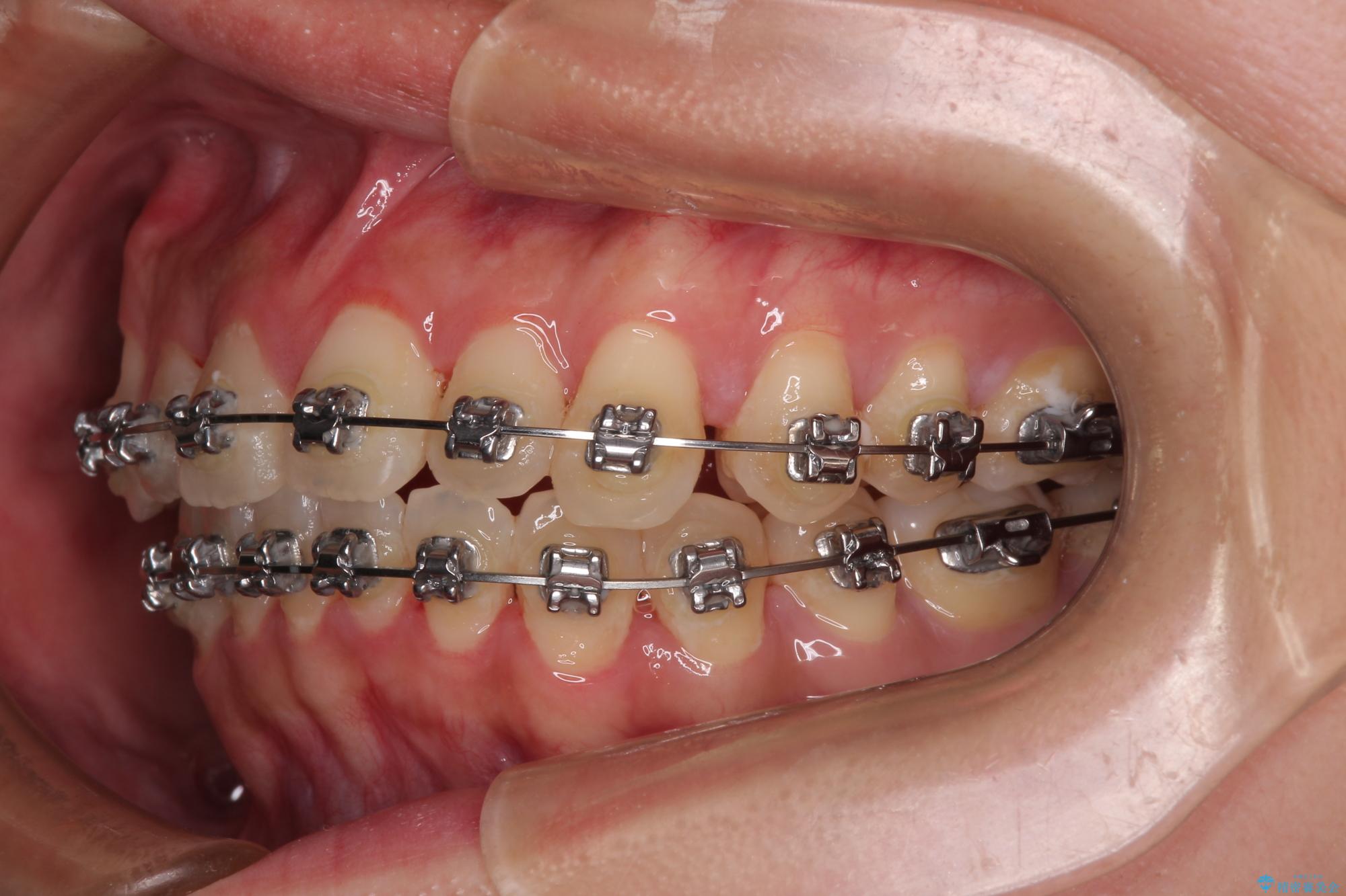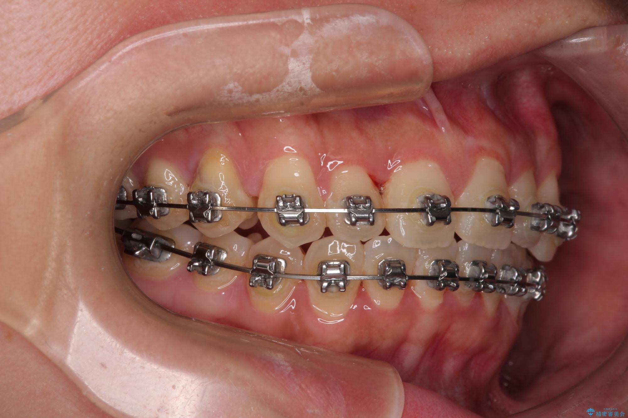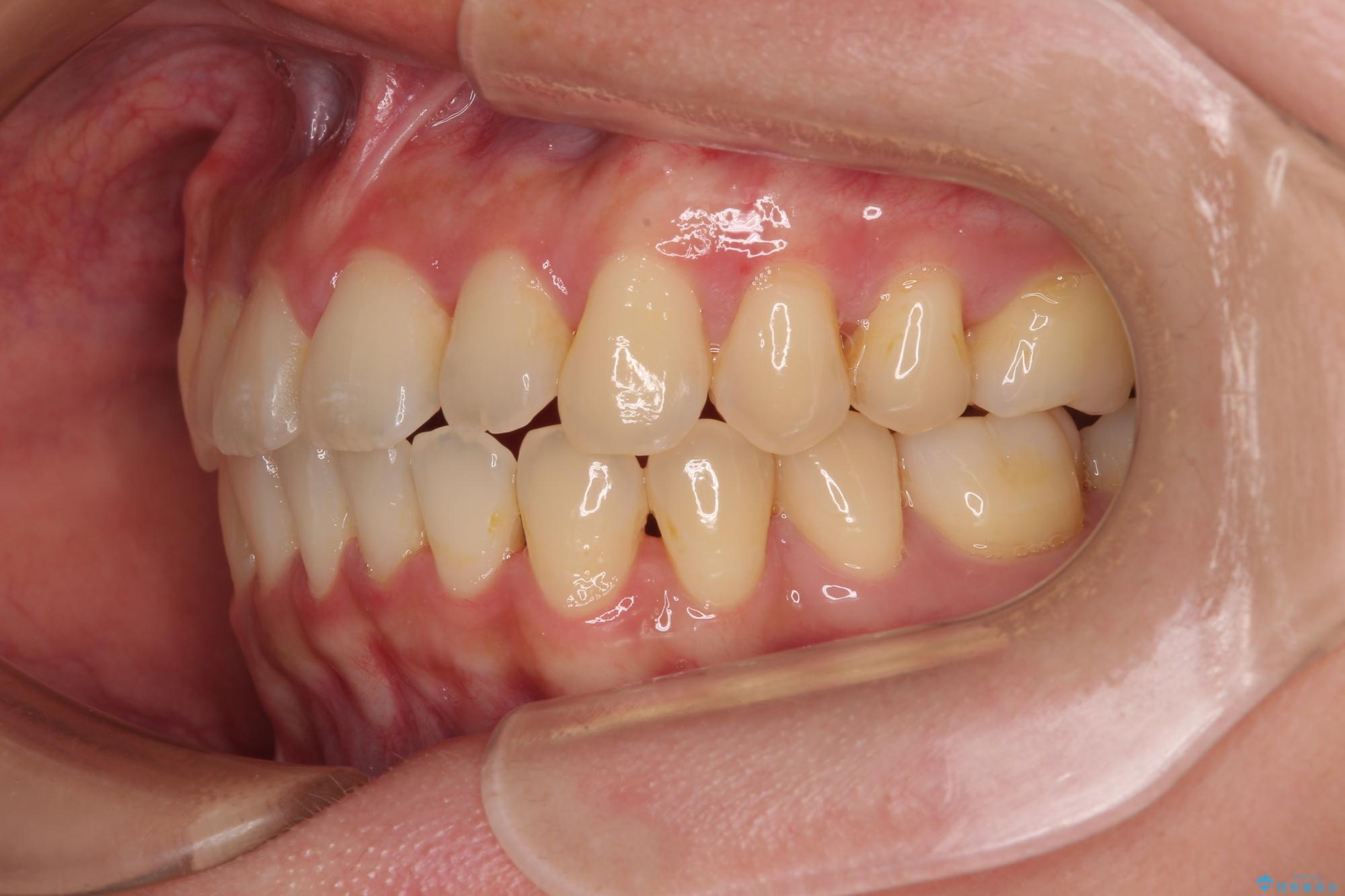 上顎歯列が下顎の歯列に対して狭小であり、一部下顎の奥歯が上顎よりも外側に位置している状態でした。