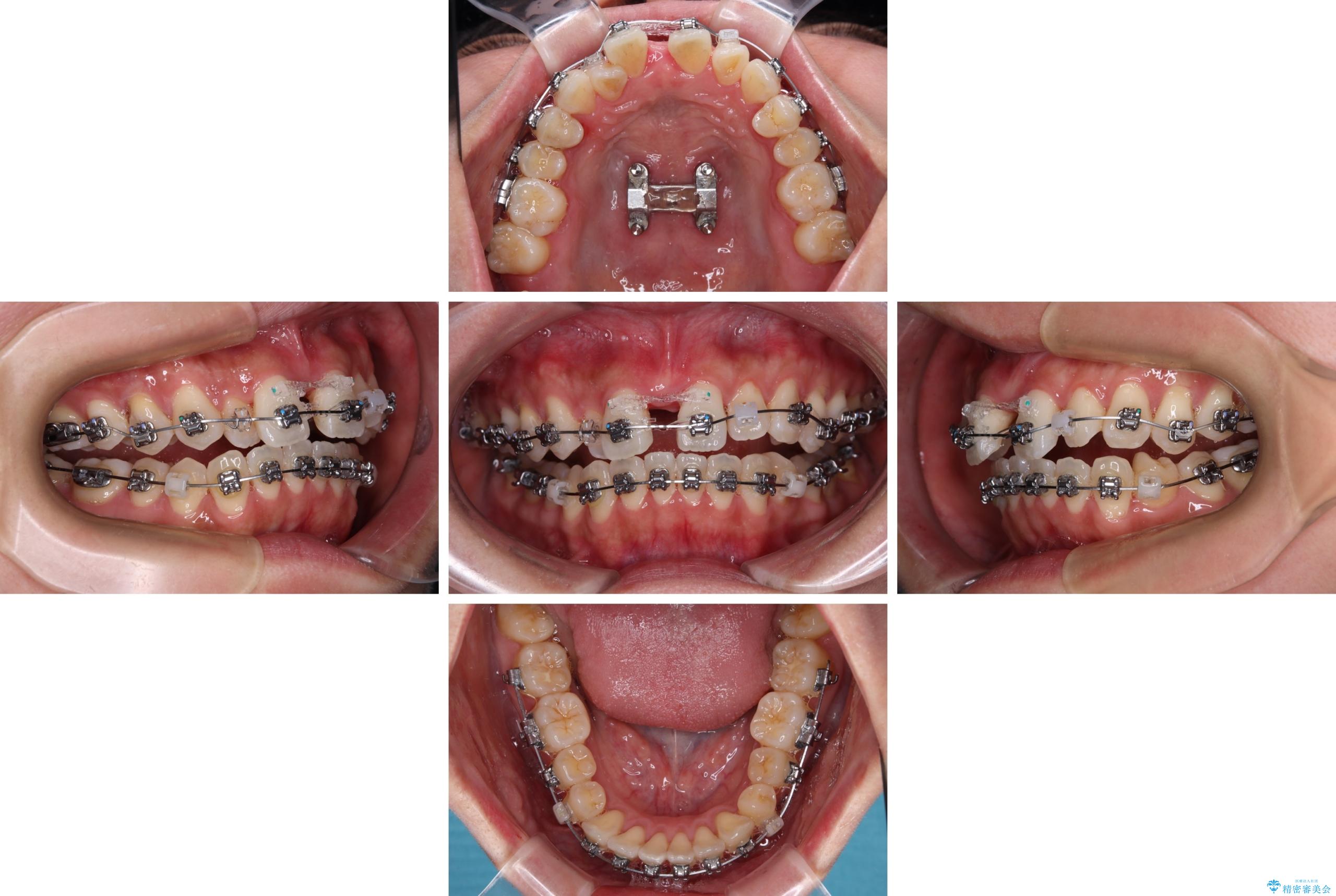 上顎の急速拡大装置を使用して上顎骨を側方に拡大することで上顎歯列を拡大し、下顎歯列も拡大できるようにすることで、歯列を整えることとしました。