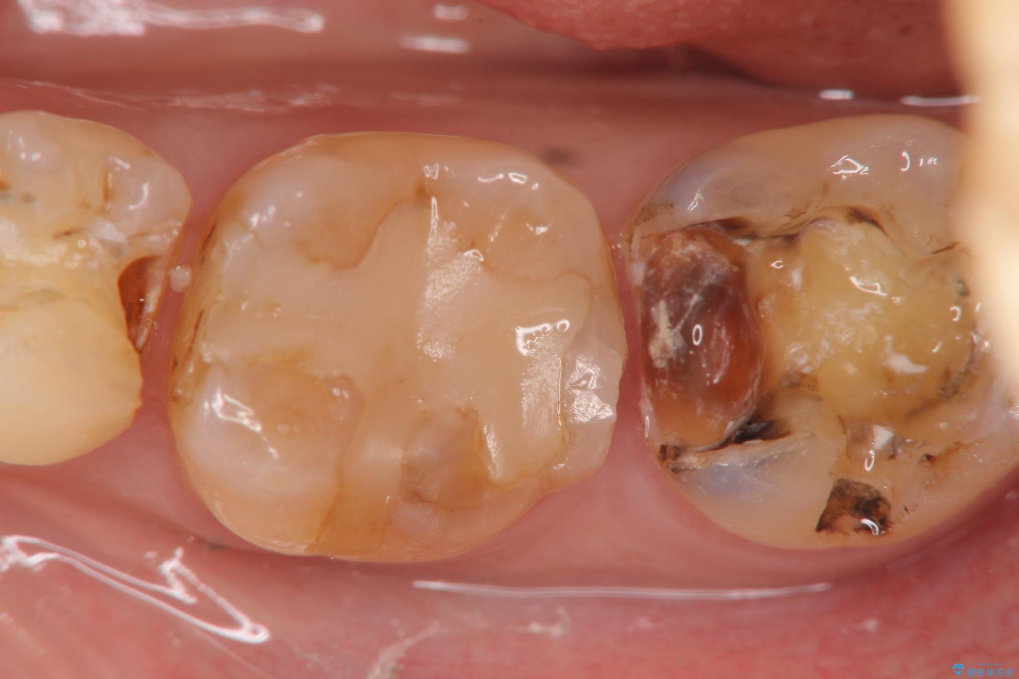健全な歯を削らないように拡大鏡下で丁寧に虫歯を除去することで神経を温存し精密なセラミック治療を行うことができました。