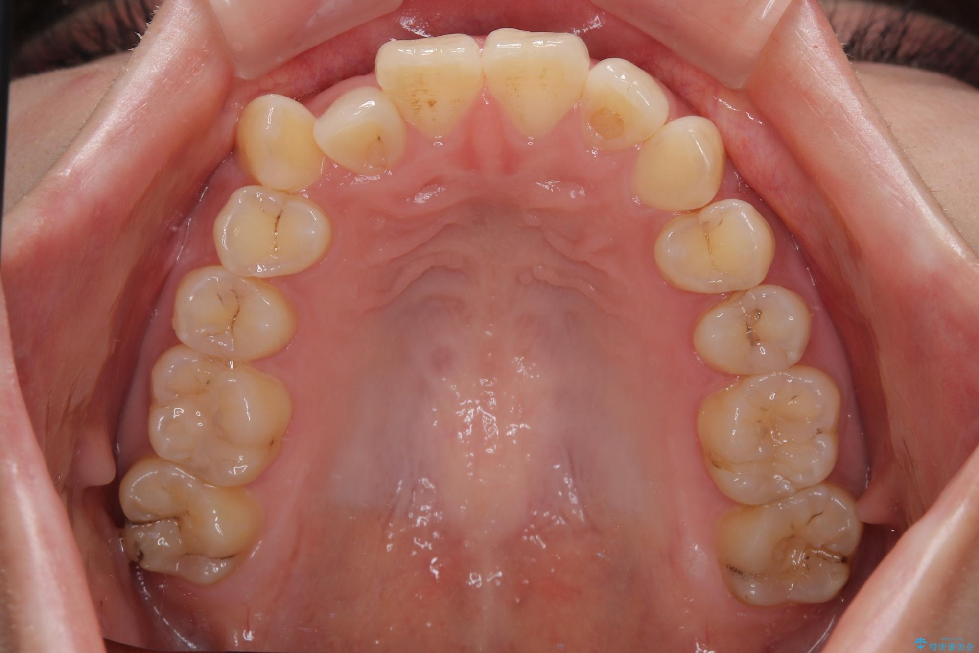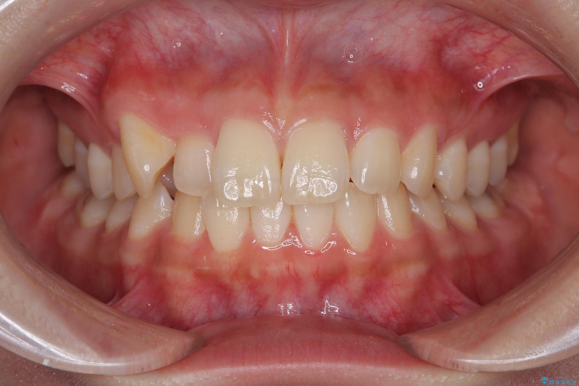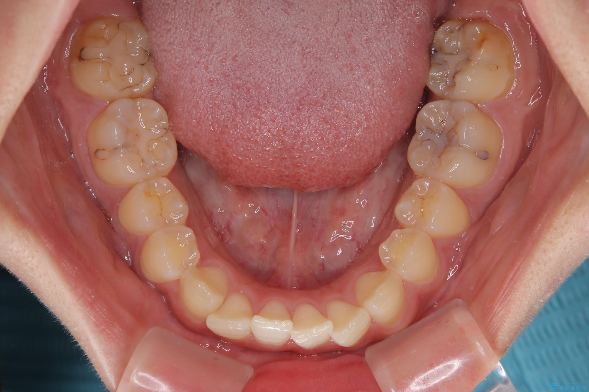 ワイヤー矯正でもマウスピース矯正でも可能でしたが、短期間で、自身の手を煩わせることなく治療を行いたいとのことで、ワイヤー装置にて矯正治療を行うこととしました。