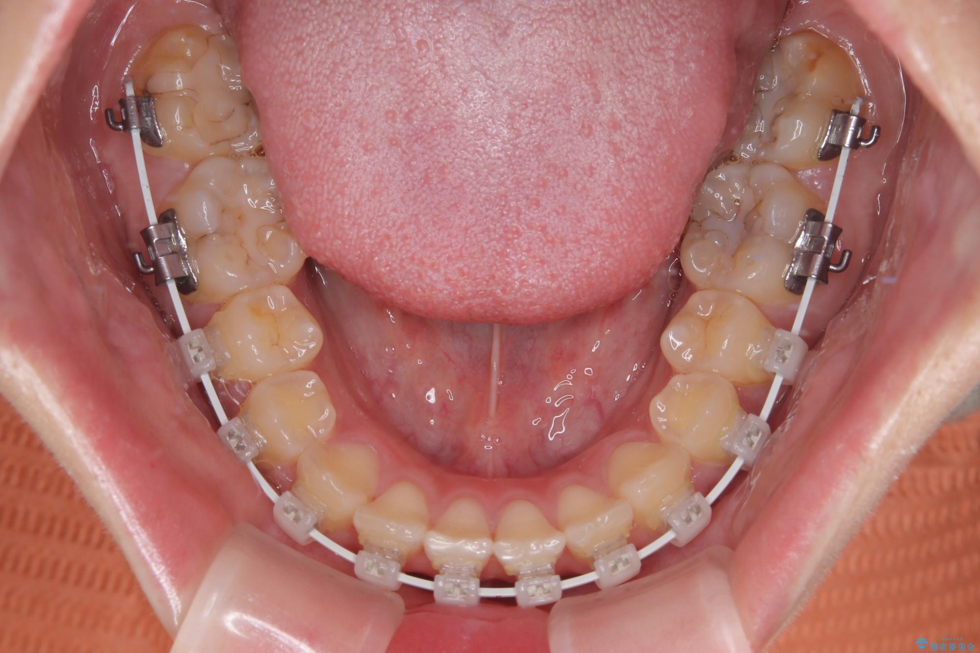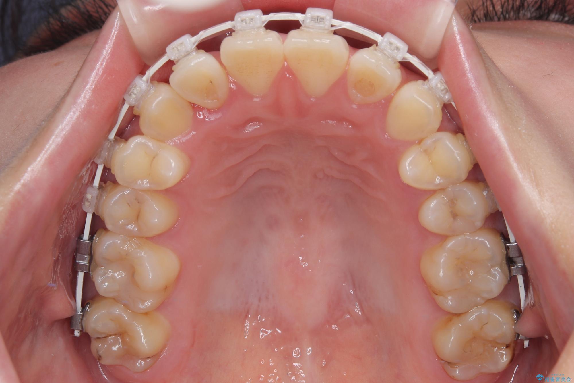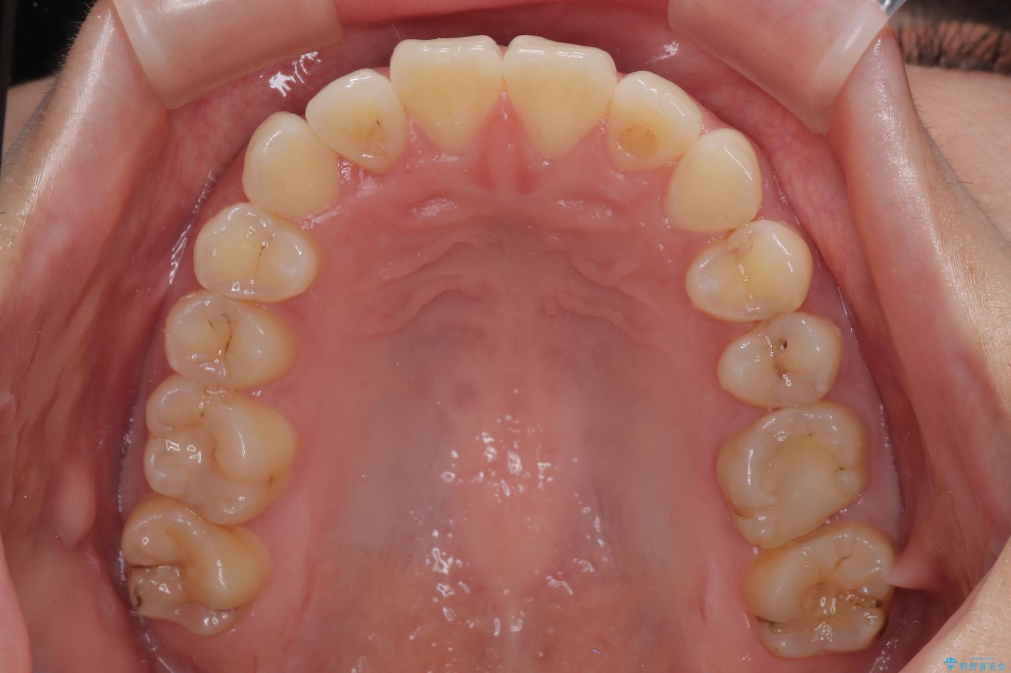 ワイヤー矯正でもマウスピース矯正でも可能でしたが、短期間で、自身の手を煩わせることなく治療を行いたいとのことで、ワイヤー装置にて矯正治療を行うこととしました。