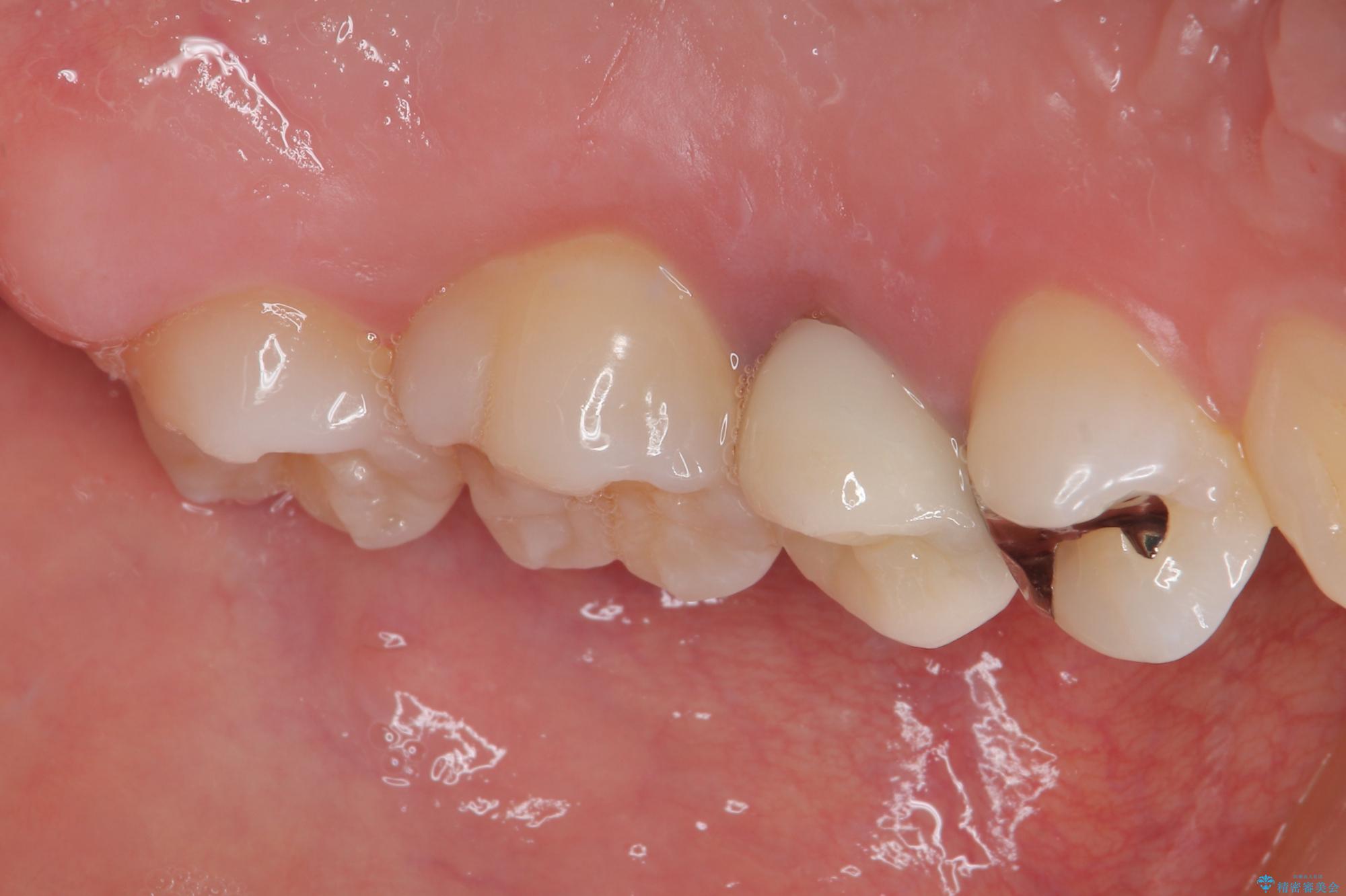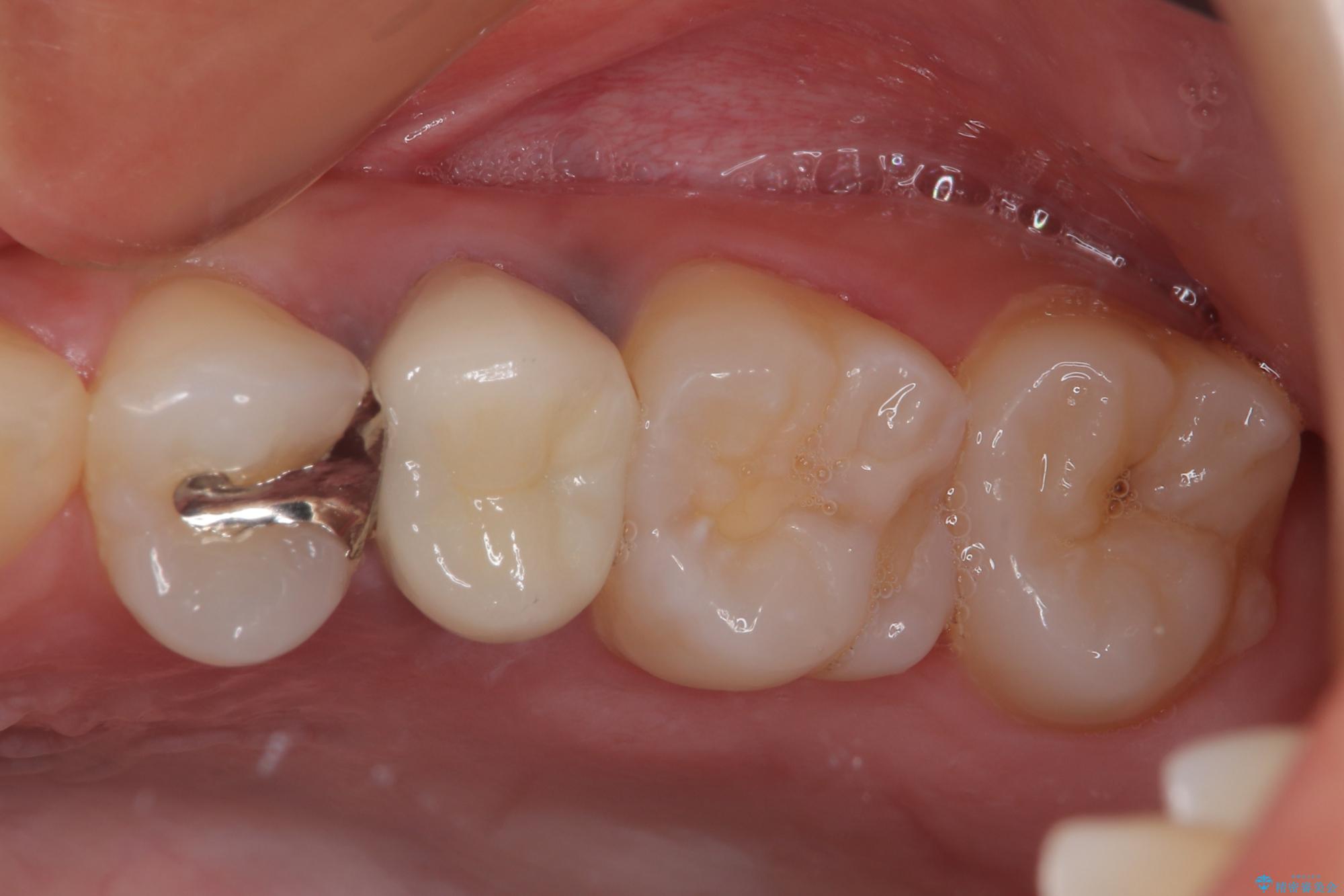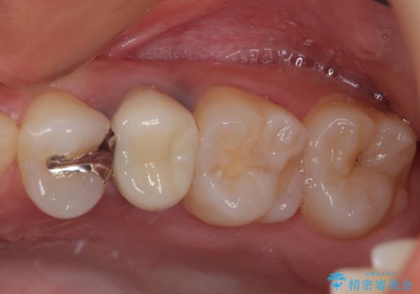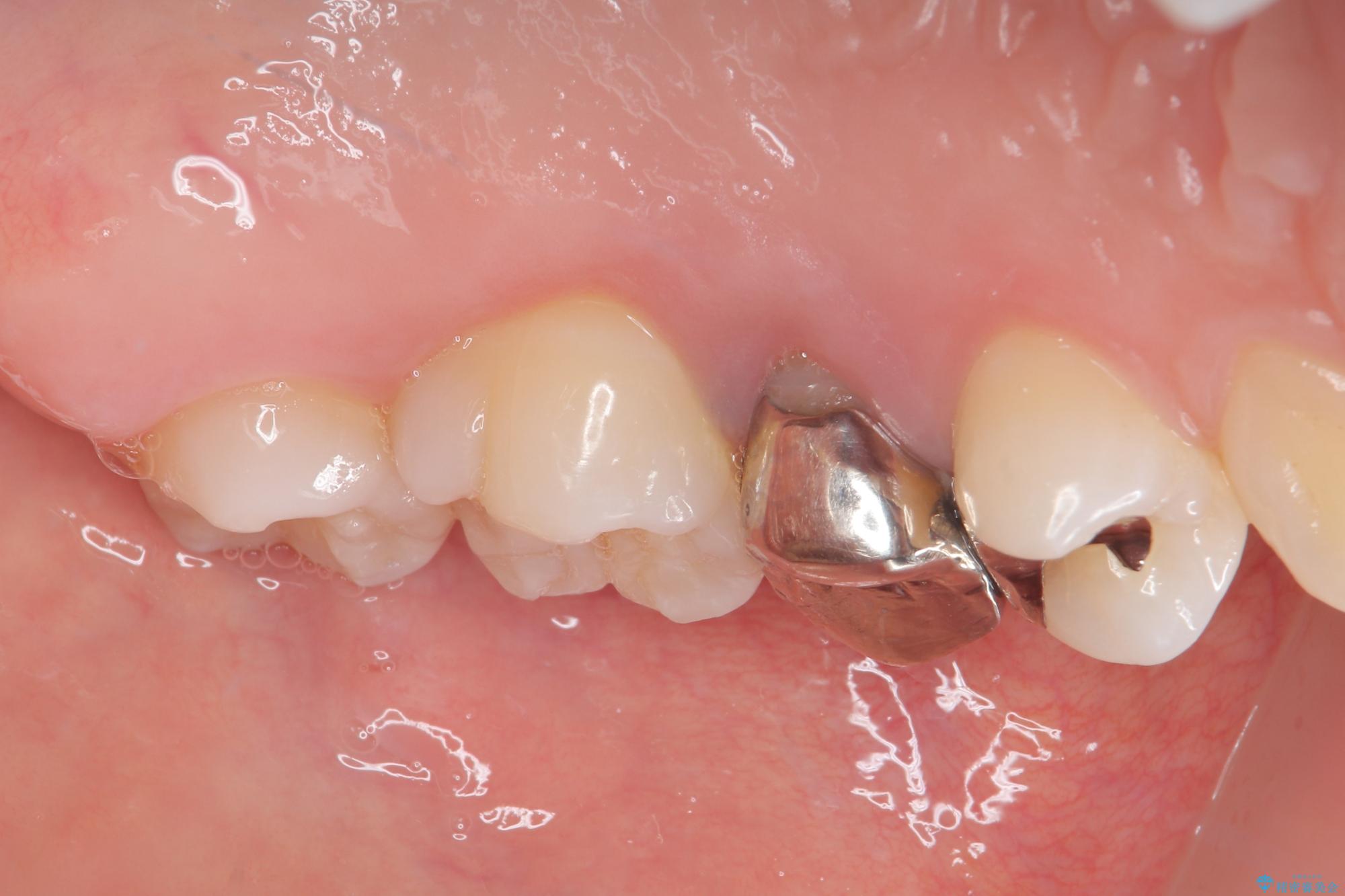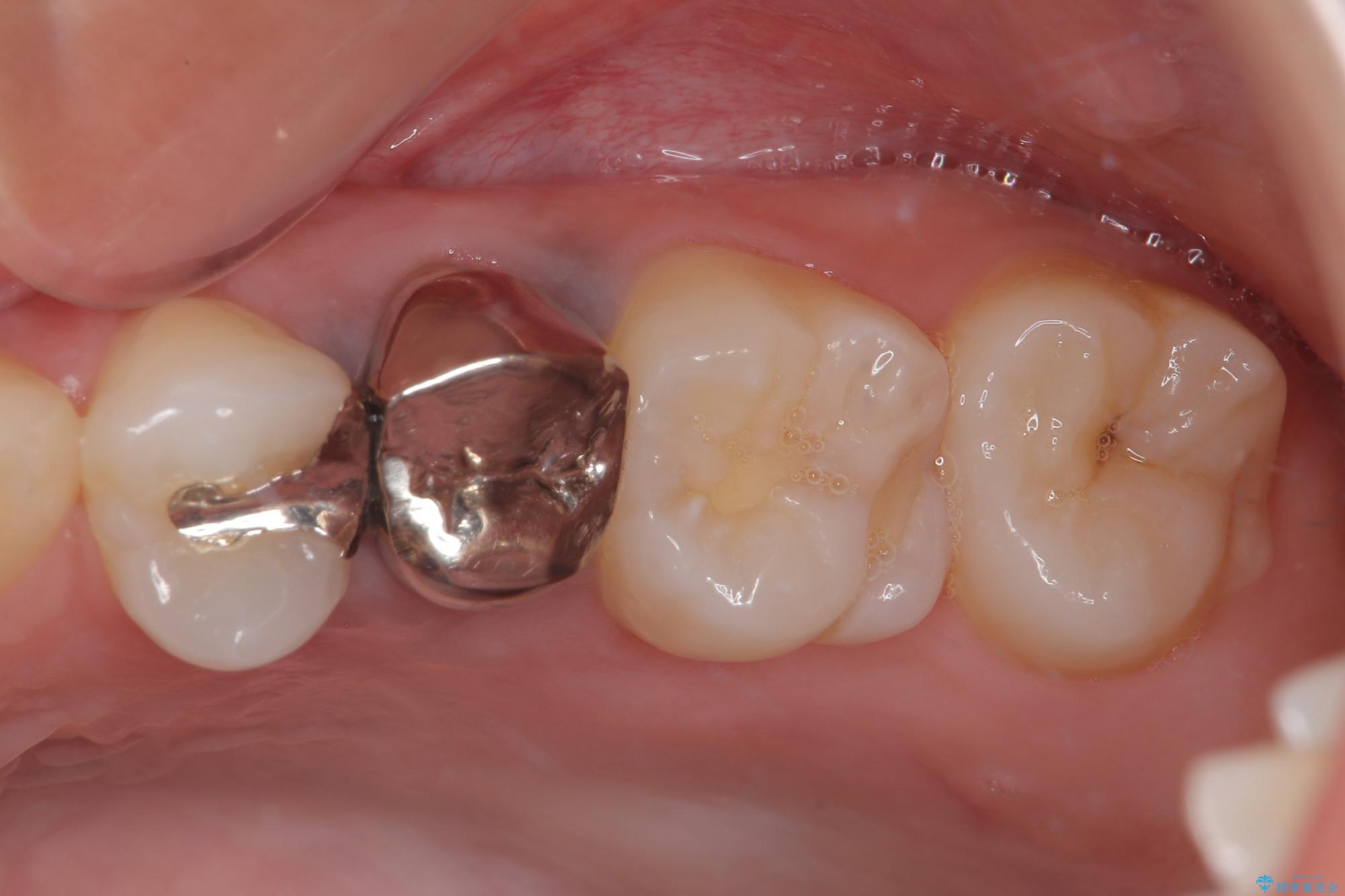 - 笑った時に目立つ銀歯を治したいとのことで来院された患者様です。検査の結果、オールセラミッククラウンによる補綴治療を行っていくことにしました。