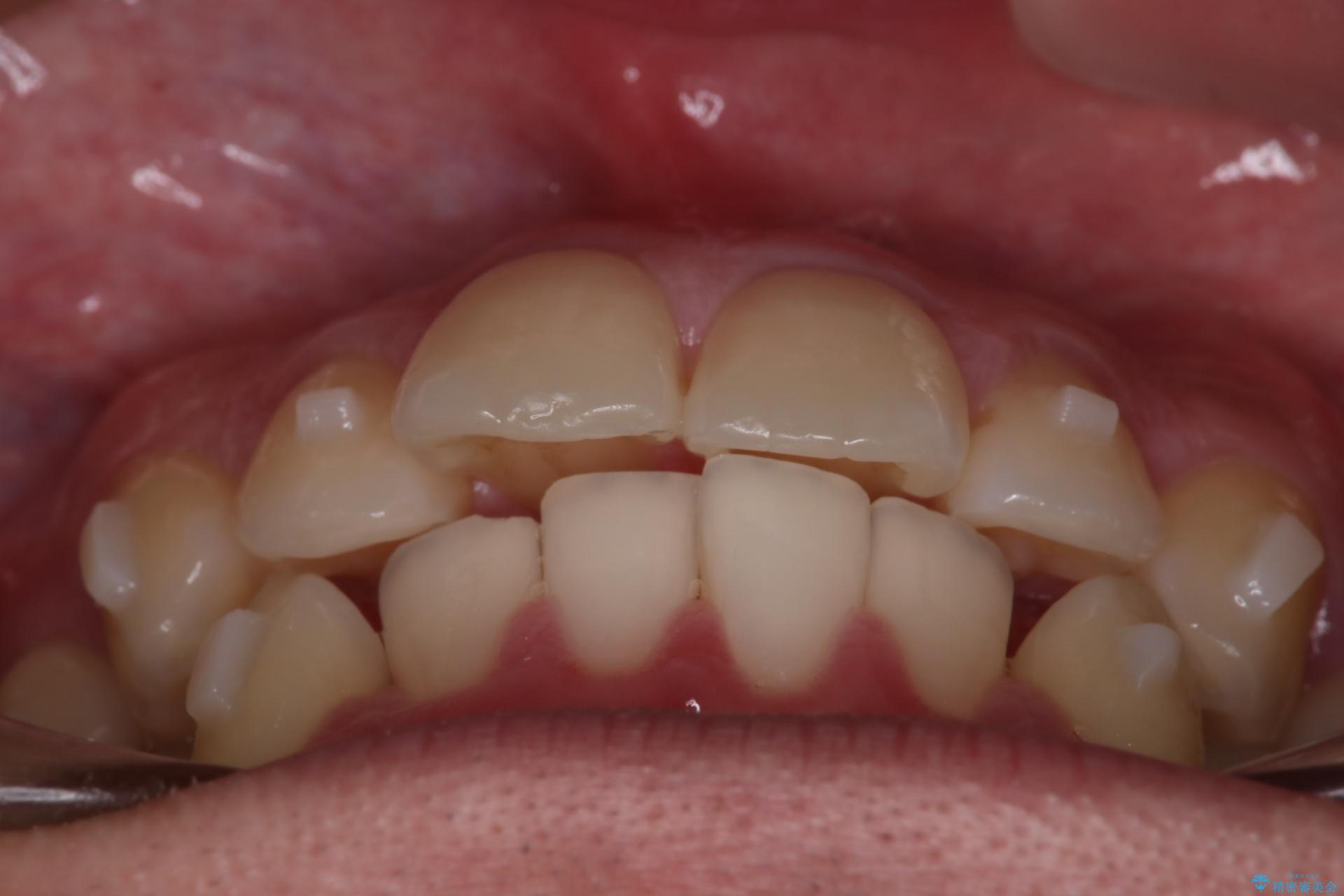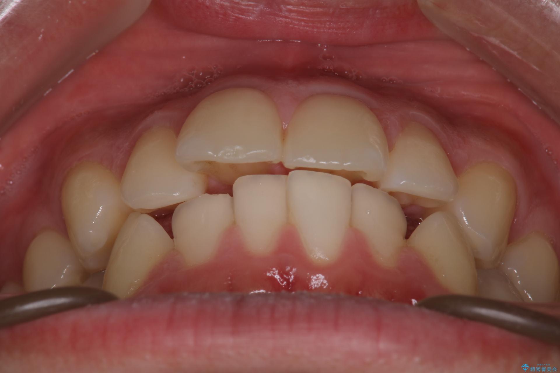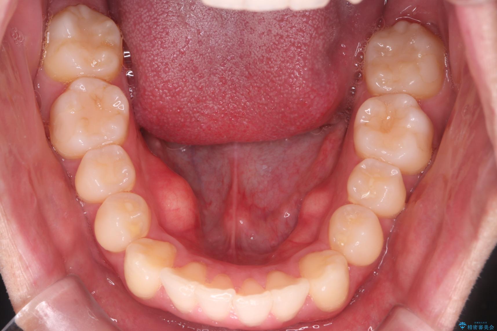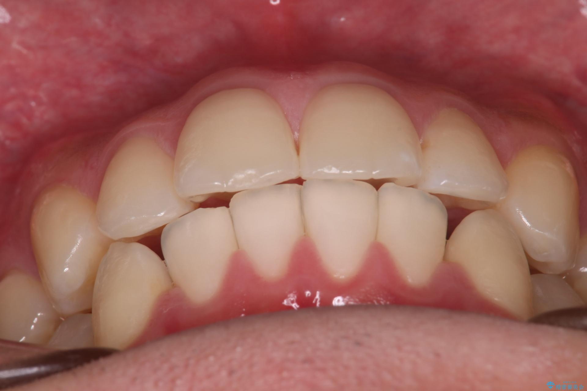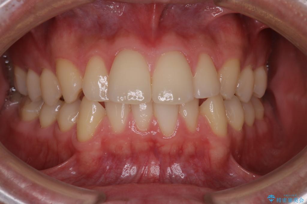 インビザライン希望のため、IPR(歯と歯の間を削る処置)を行うことで、前歯の位置とがたつき整える治療計画を立てました。